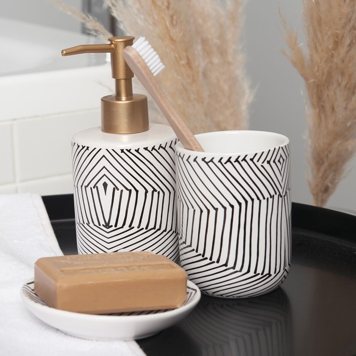 Черные линии на белом фоне - звучит скучно? Мы говорим – звучит ярко и немного дерзко. Добавьте каплю динамики в интерьер - купите мыльницу из серии "Lines"!