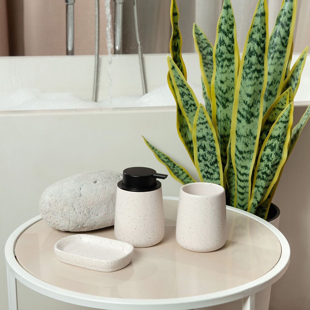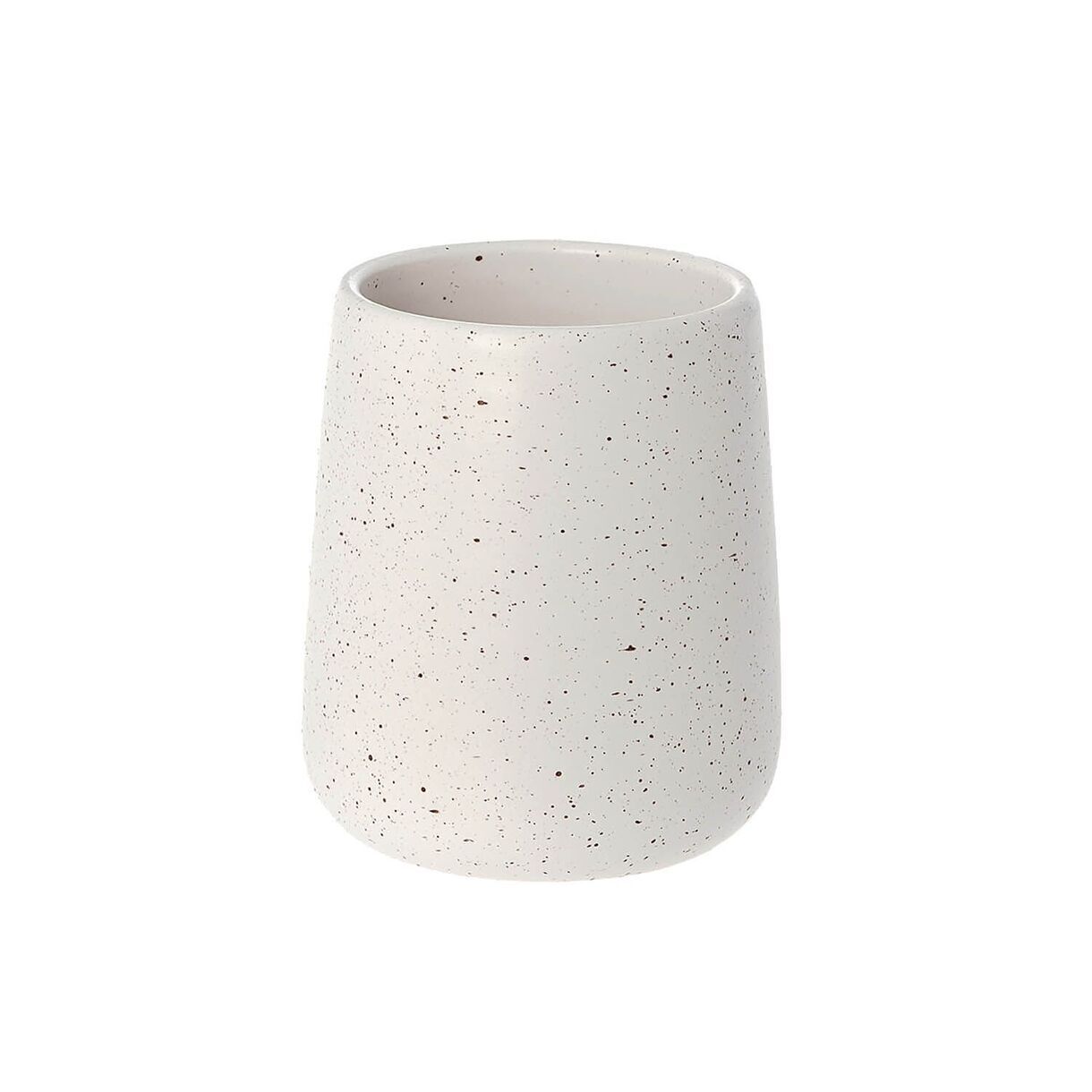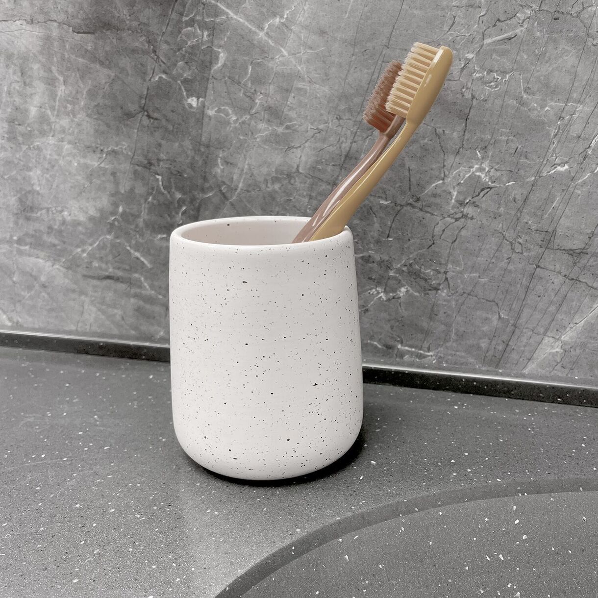 Стильный интерьерный стакан для зубных щеток выполнен из качественной керамики, в молочном цвете с темно-бежевым крапом. Цвет напоминает нам песчаный берег южного моря, именно поэтому коллекция получила свое название одной из самых красивых бухт мира - Бухта Наваджо. Широкий диаметр горловины стакана обеспечивает комфортное использование. Поверхность стакана не только визуально красива, но и приятна на ощупь. Благодаря гладкой поверхности уход за изделием прост и не займет много времени. В коллекции Бухта Наваджо также представлены диспенсер для жидкого мыла, мыльница для кускового мыла и ерш для туалета. Для обеспечения сохранности каждое изделие в коллекции упаковано в бабл-пленку и в коробочку из микрогофрокартона.
