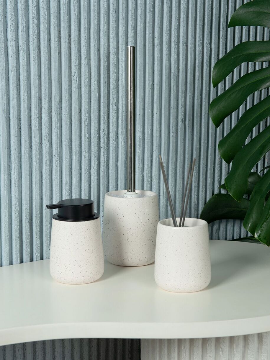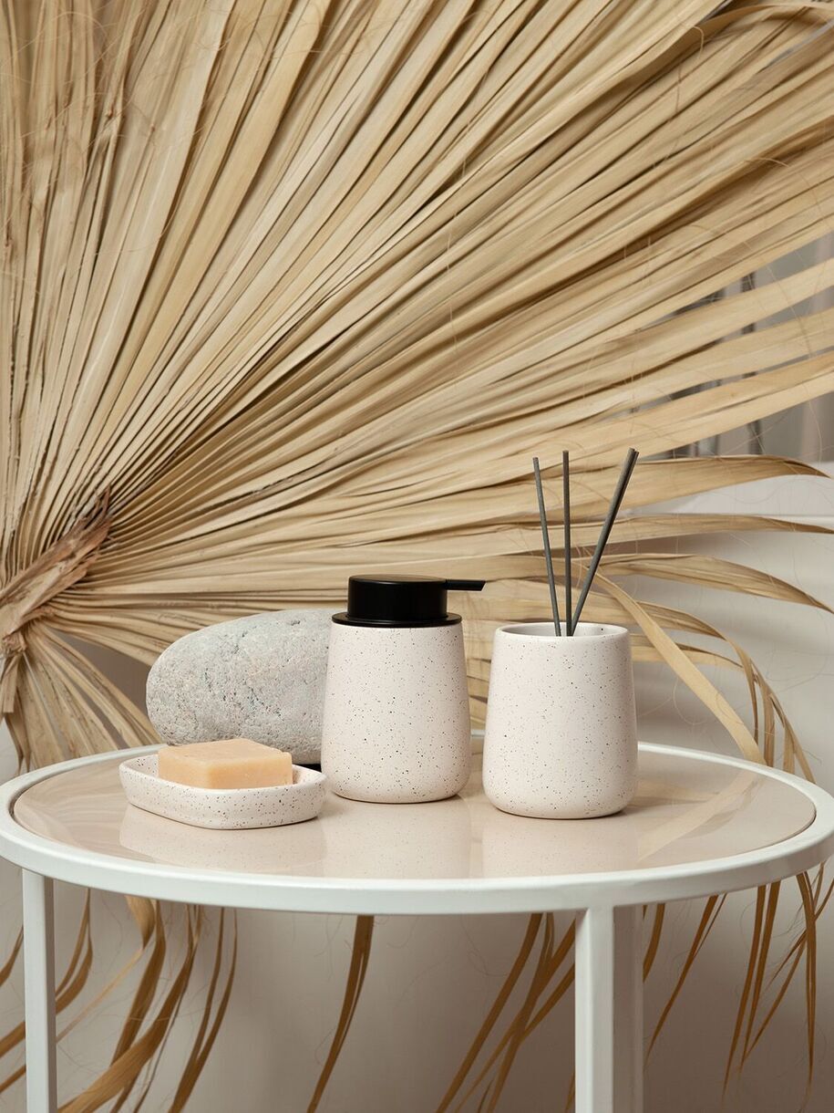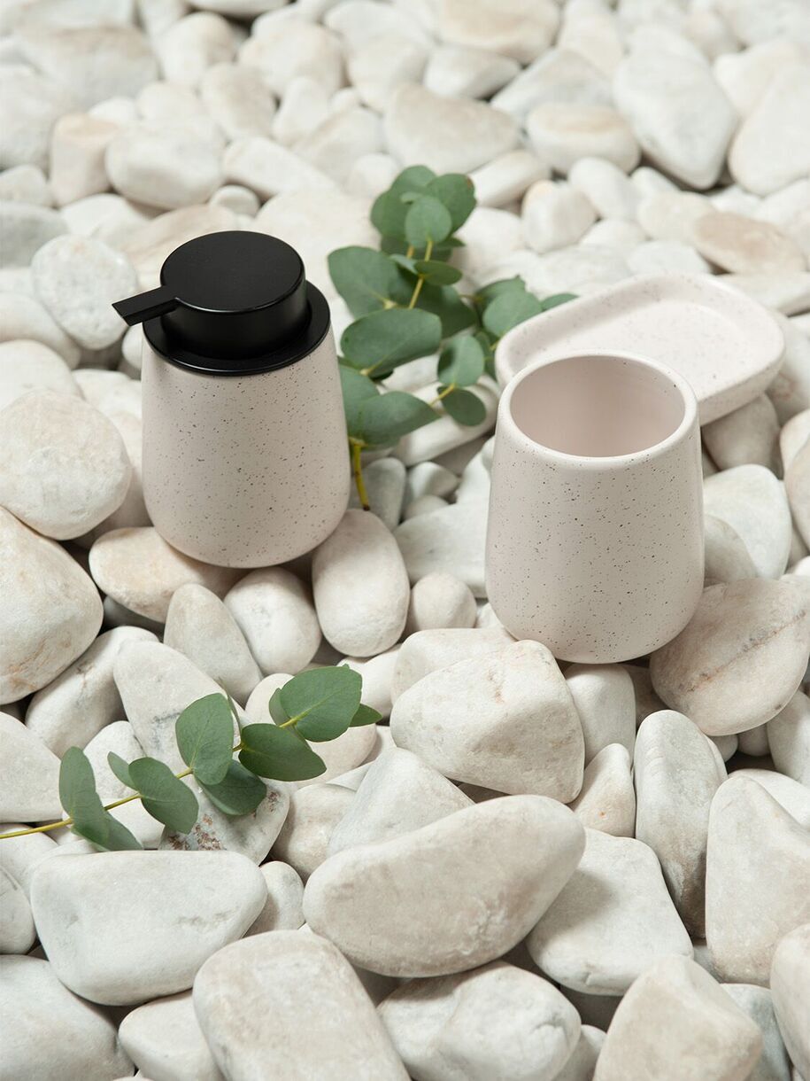 Стильный интерьерный стакан для зубных щеток выполнен из качественной керамики, в молочном цвете с темно-бежевым крапом. Цвет напоминает нам песчаный берег южного моря, именно поэтому коллекция получила свое название одной из самых красивых бухт мира - Бухта Наваджо. Широкий диаметр горловины стакана обеспечивает комфортное использование. Поверхность стакана не только визуально красива, но и приятна на ощупь. Благодаря гладкой поверхности уход за изделием прост и не займет много времени. В коллекции Бухта Наваджо также представлены диспенсер для жидкого мыла, мыльница для кускового мыла и ерш для туалета. Для обеспечения сохранности каждое изделие в коллекции упаковано в бабл-пленку и в коробочку из микрогофрокартона.