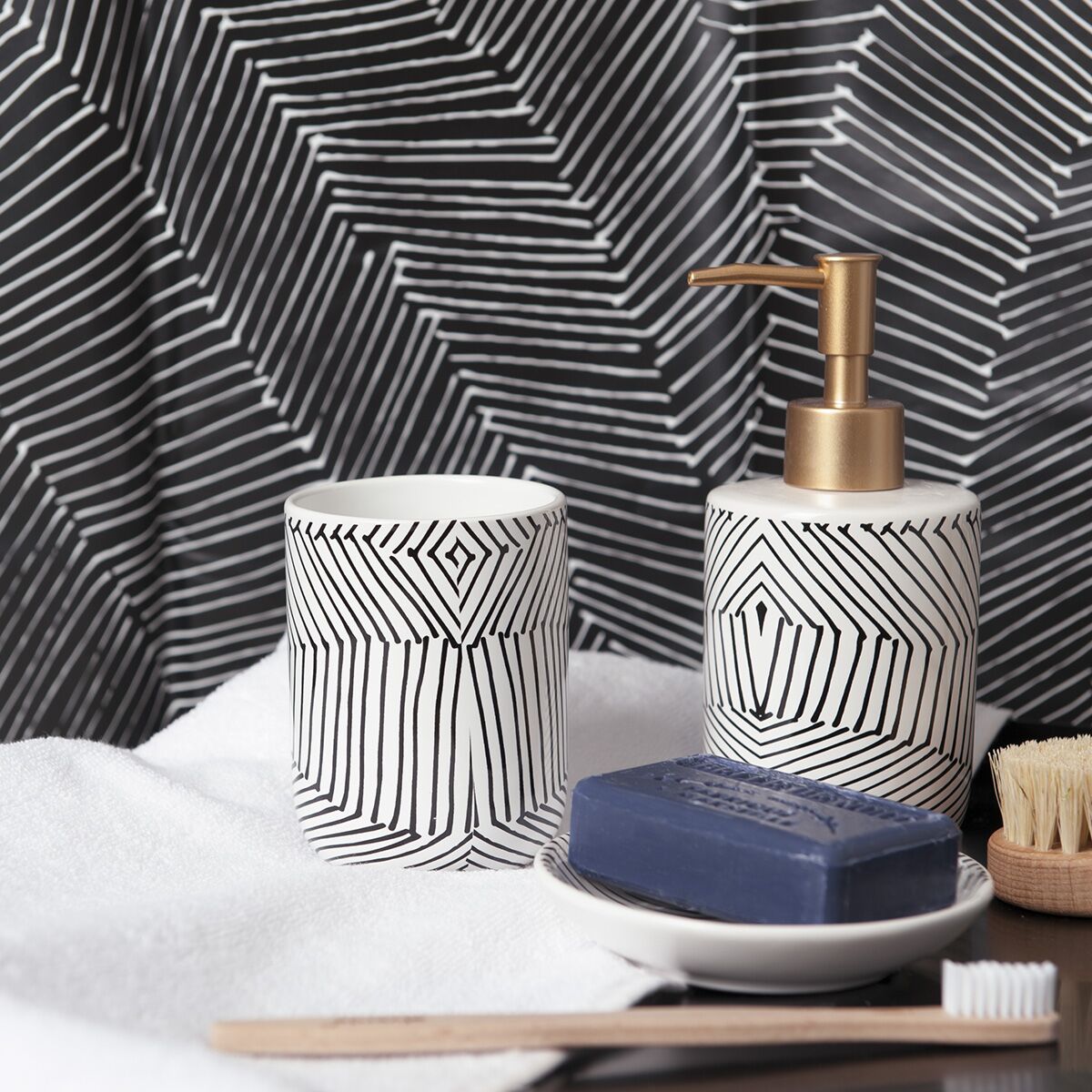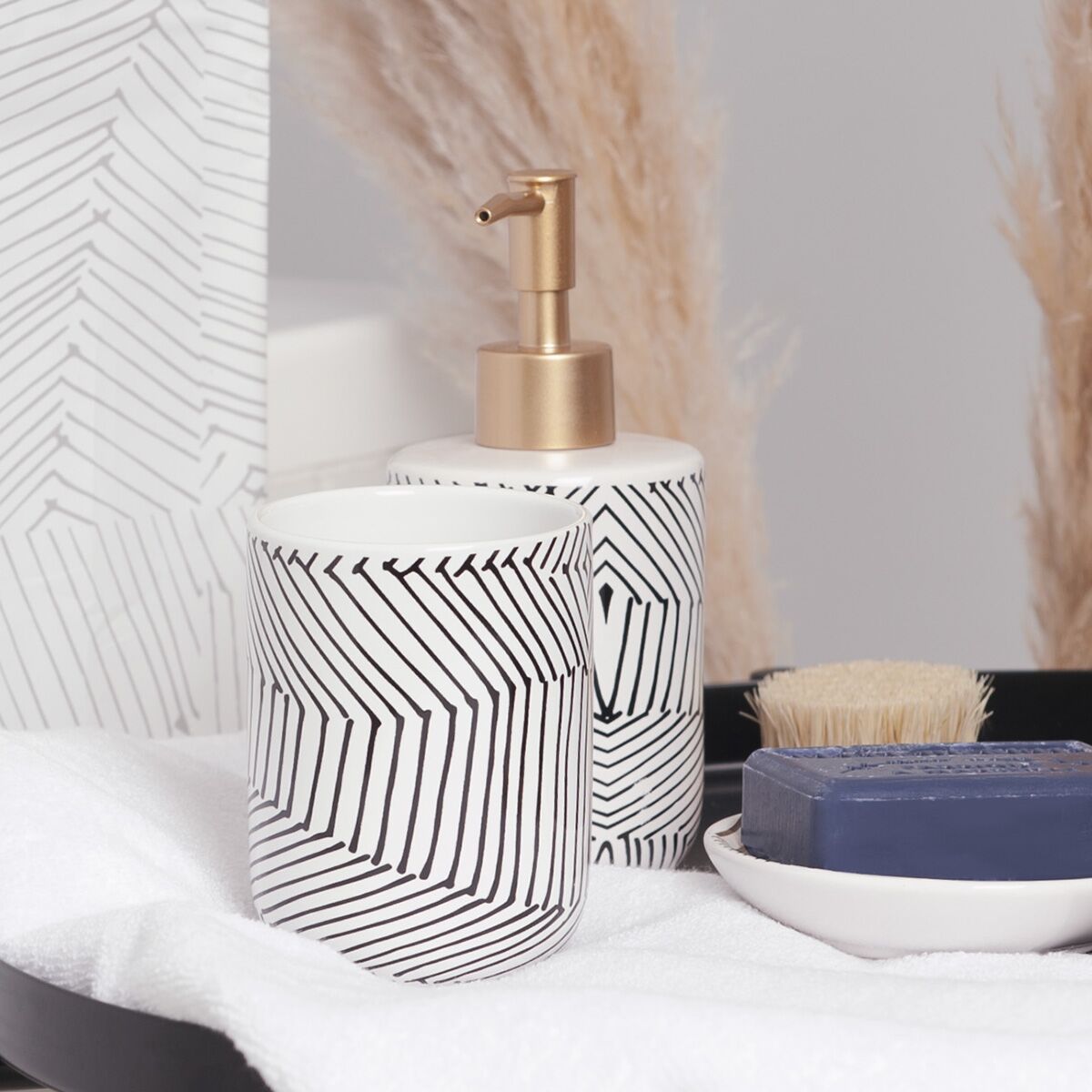 Черные линии на белом фоне - звучит скучно? Мы говорим – звучит ярко и немного дерзко. Добавьте каплю динамики в интерьер - купите стакан для щеток из серии "Lines"!