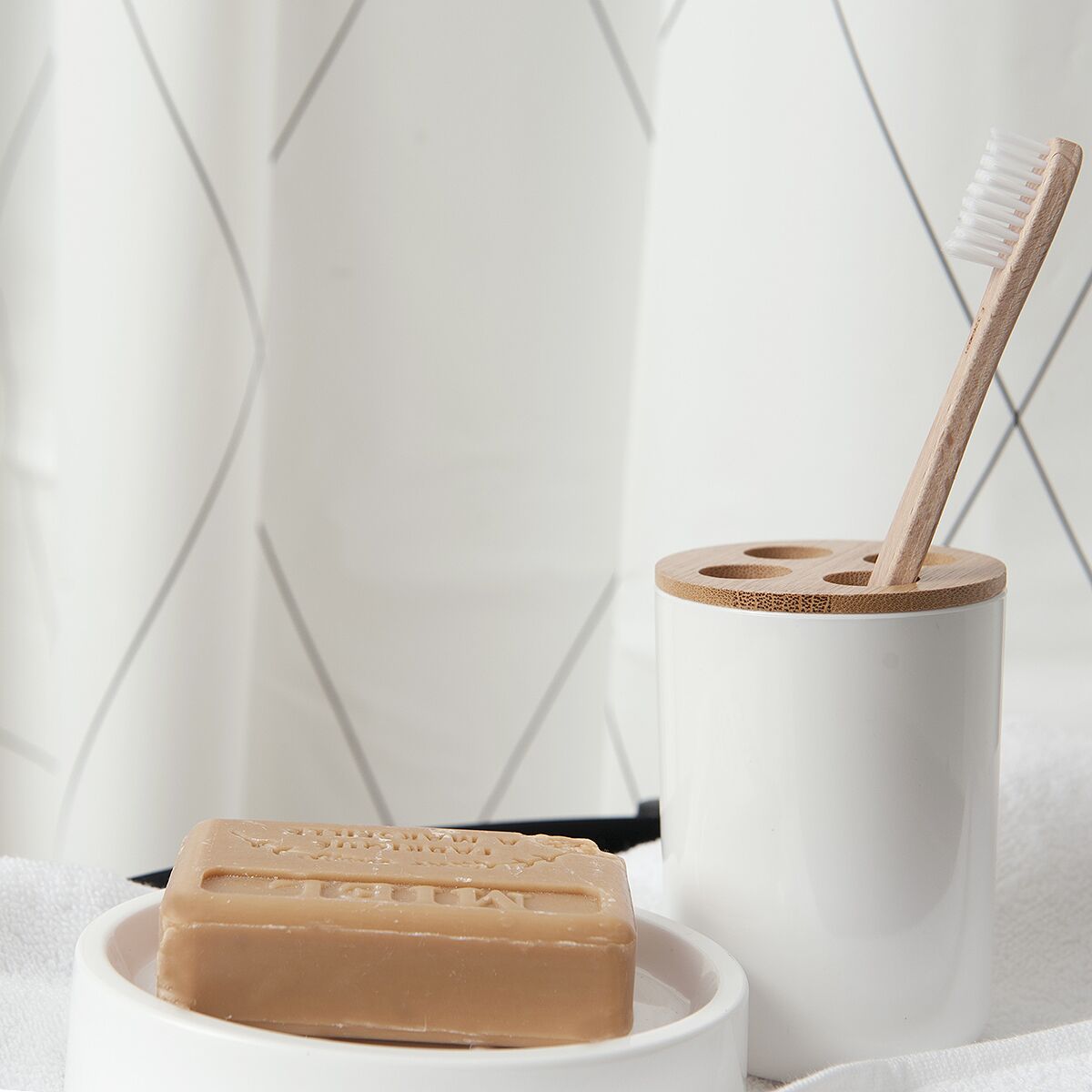 Легкий белый пластик отличная альтернатива керамическим аксессуарам для ванной. Легкий и прочный пластик прослужит долго и станет милым акцентом в ванной.