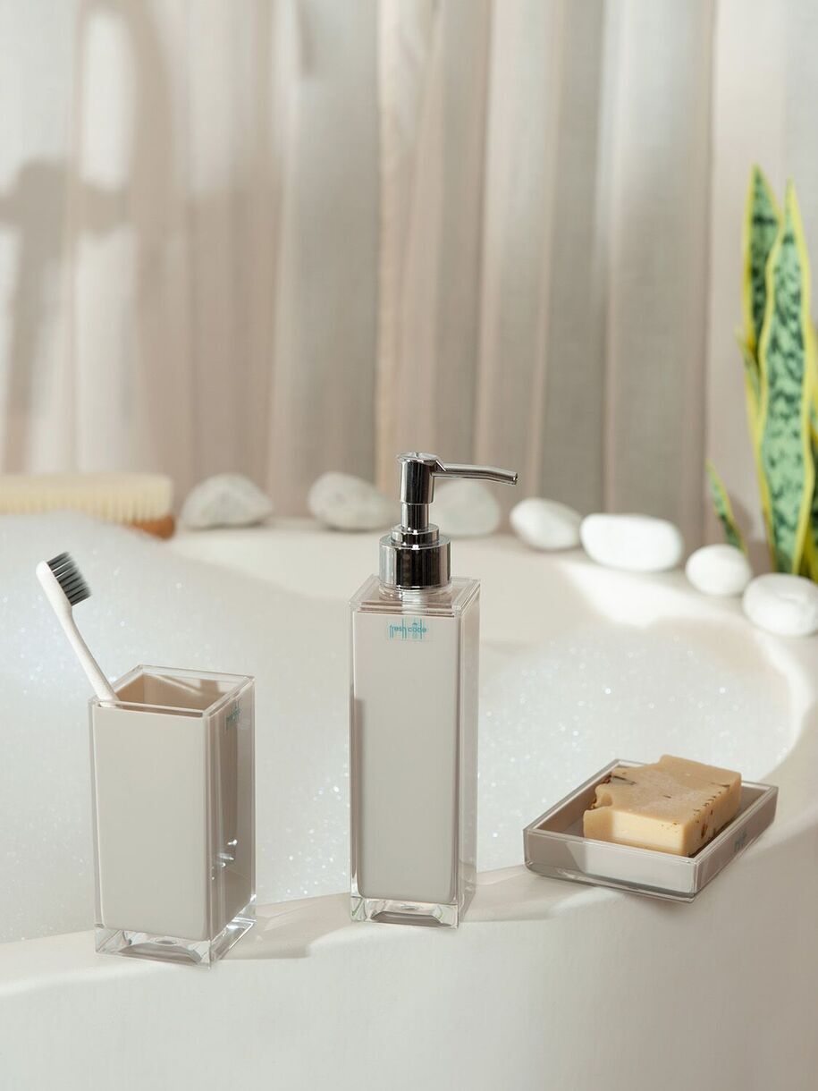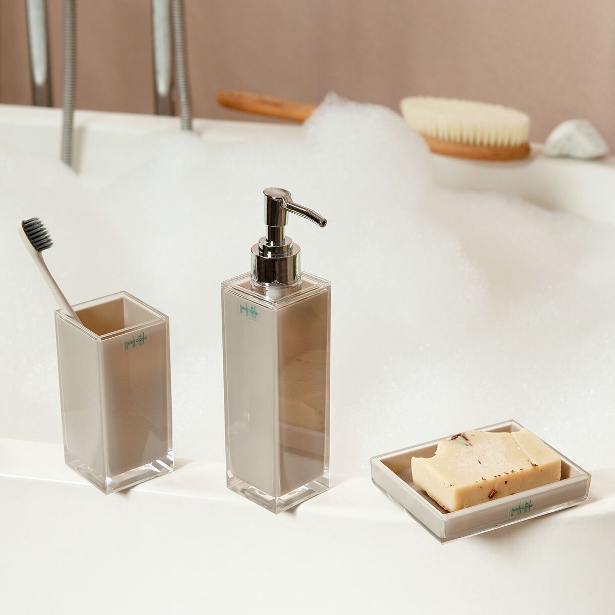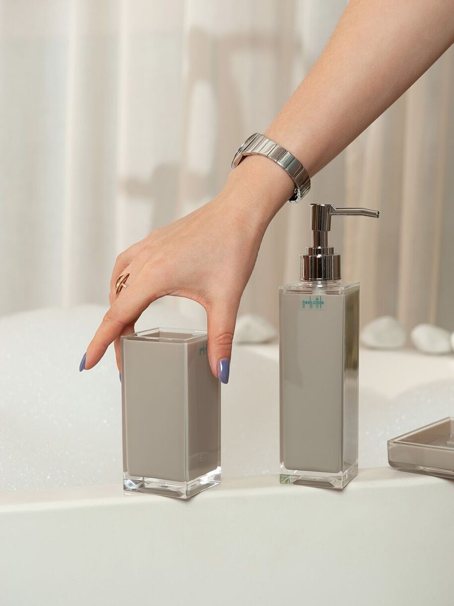 Лаконичный и стильный дизайн стакана превращает привычные процедуры в элегантный ритуал. Трендовый цвет тауп успешно сочетается как со светлыми, так и с темными интерьервами. Аксессуар изготовлен из материла SAN - аналога полистирола, но более прочного и износостойкого. Это обеспечит долгое и комфортное использование. Аксессуар сочетается с диспенсером и мыльницей из коллекции Глянцевый тауп.