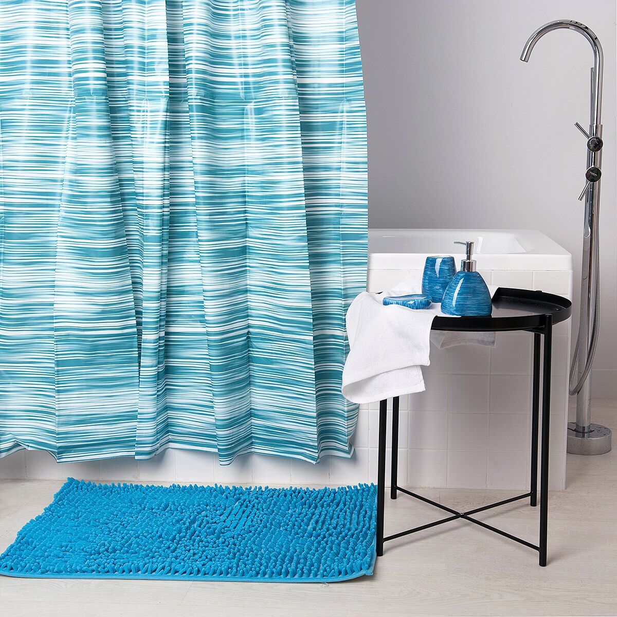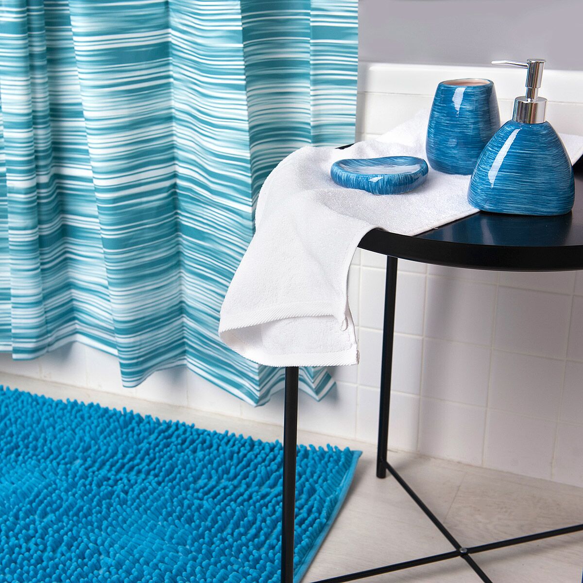 Коврик выполнен в насыщенном голубом цвете - станет ярким акцентом в ванной.