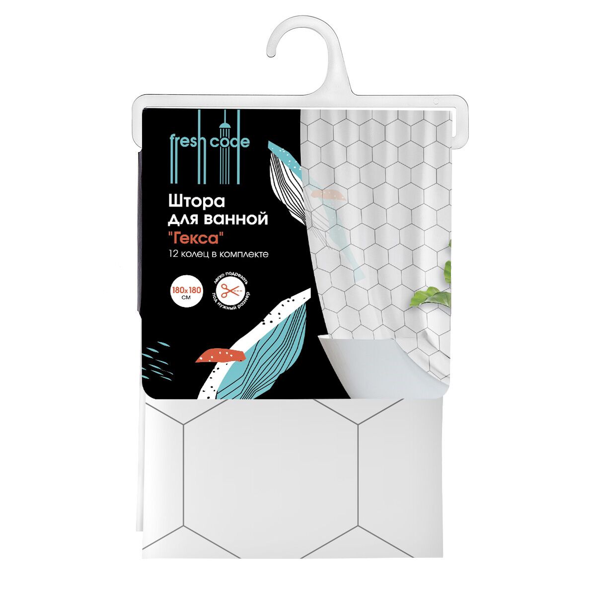 Штора для ванной с принтом "Гекса", 180*180см /24/6/1