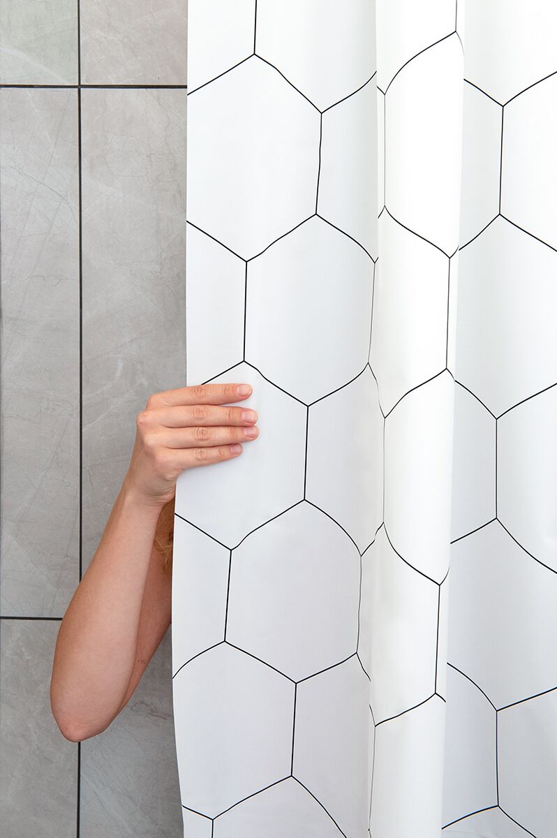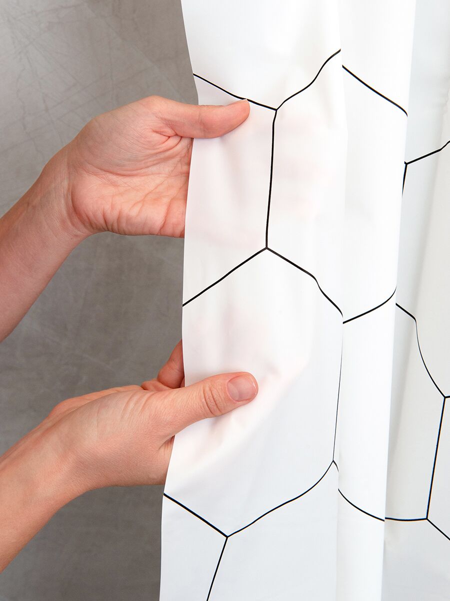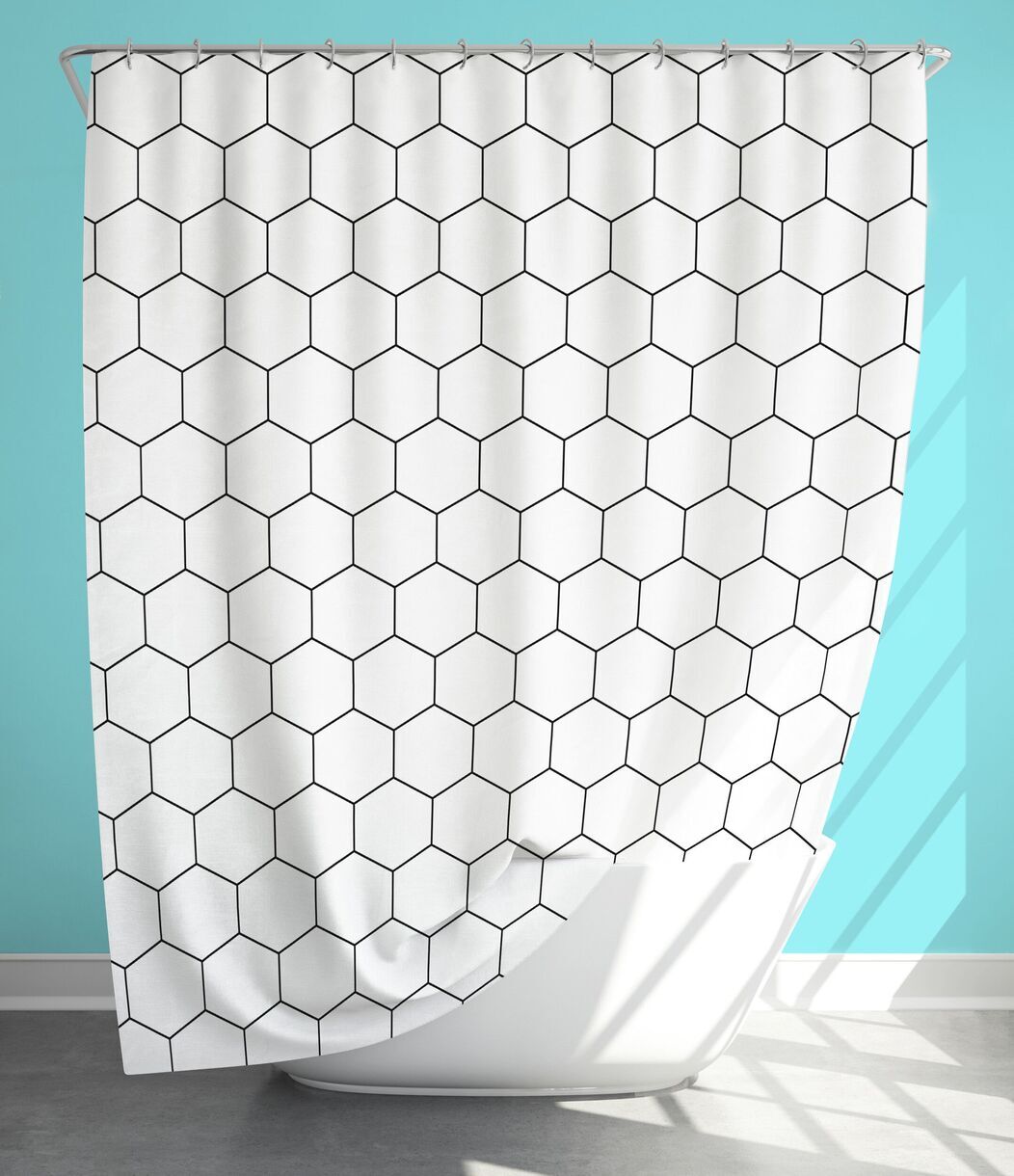 Стильная и современная штора с трендовым принтом "гексагон" на белом фоне.