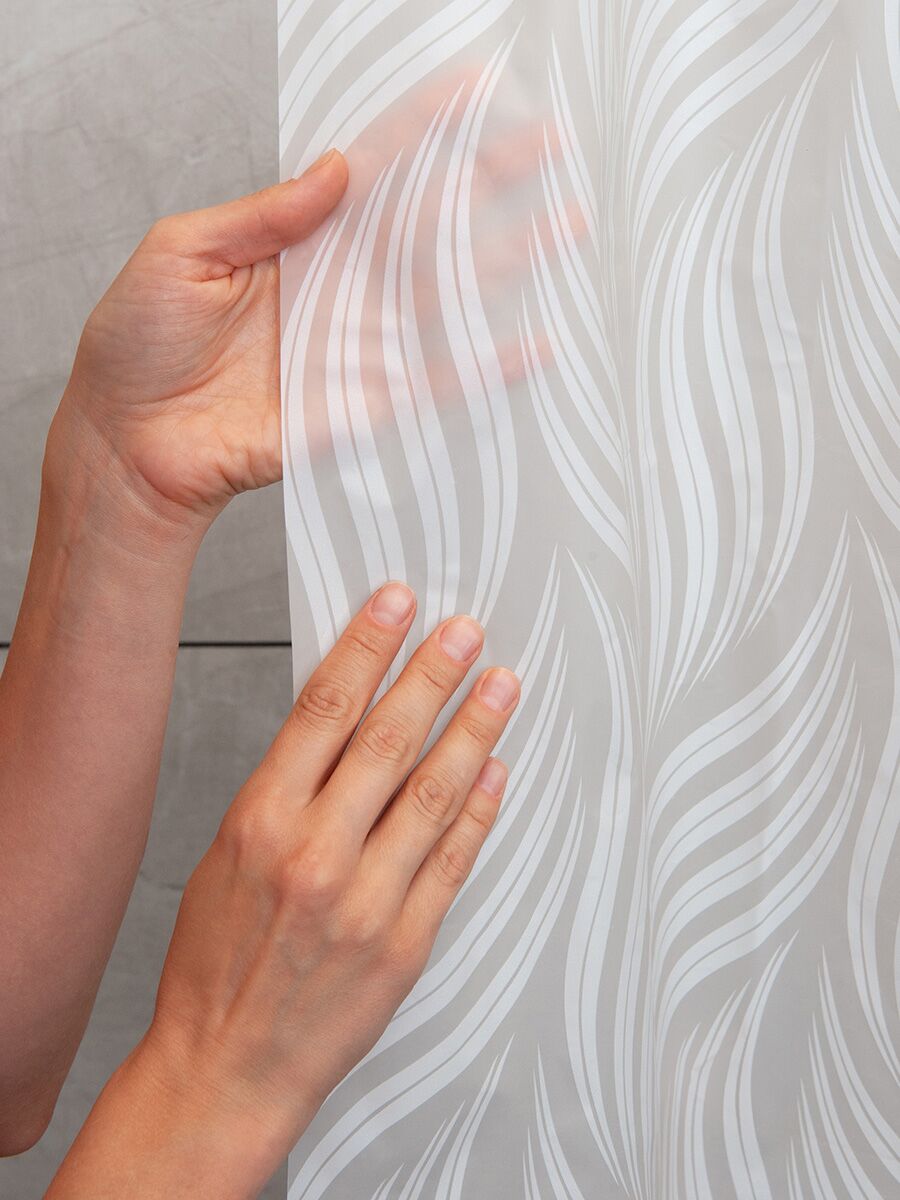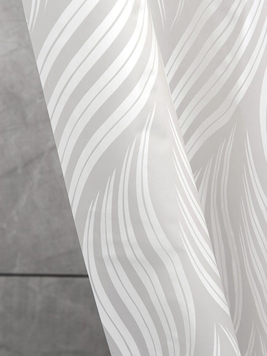 Элегантная штора из высококачественного полиэстера напоминает морозное окно с его завораживающими белыми узорами.