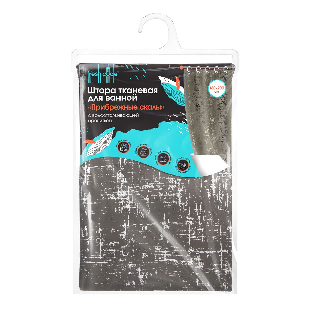 Штора тканевая для ванной "Прибрежные скалы" с пропиткой, 180*200 см, полиэстер /24/6