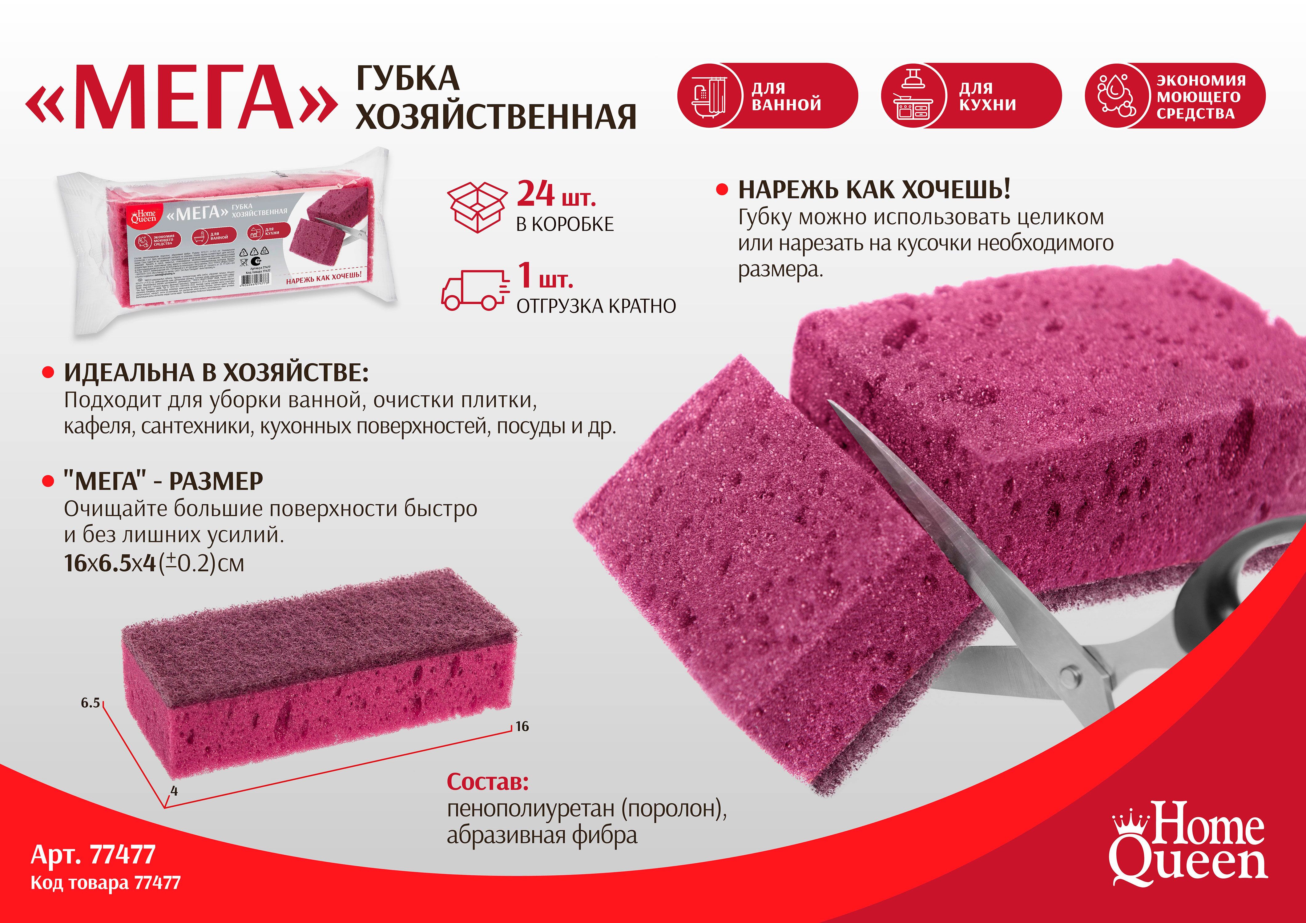 Губка хозяйственная "МЕГА" Home Queen 24/1