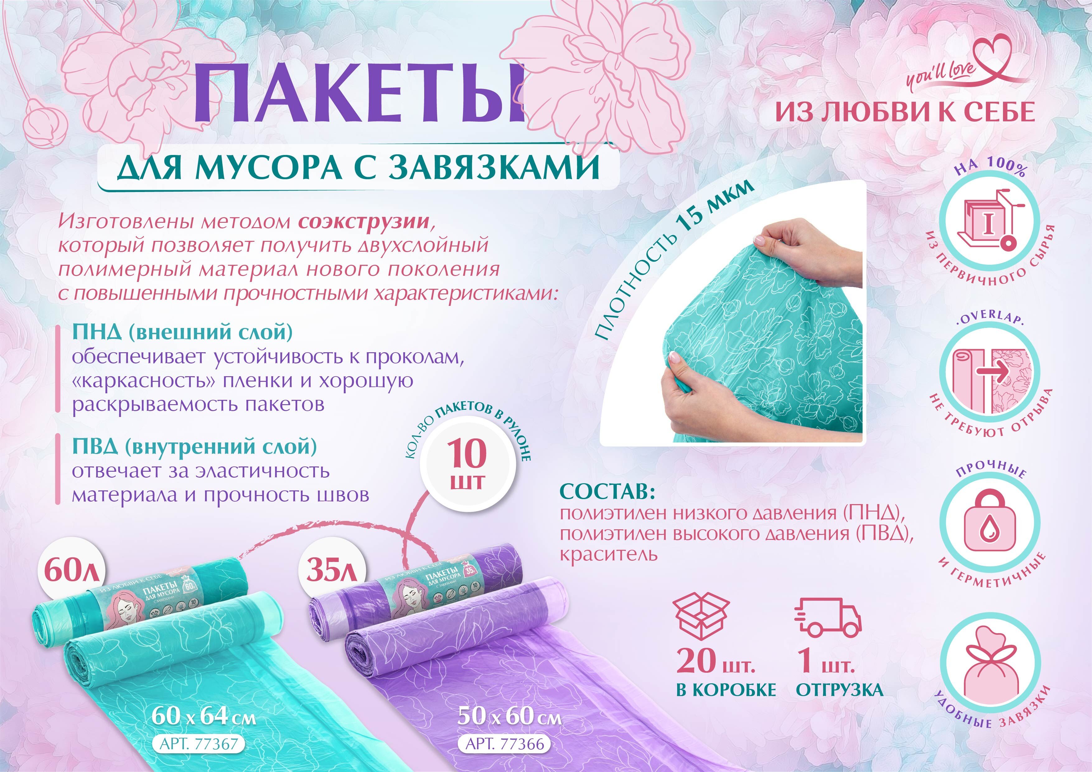 Мусорные пакеты Пионы 77367, 77366