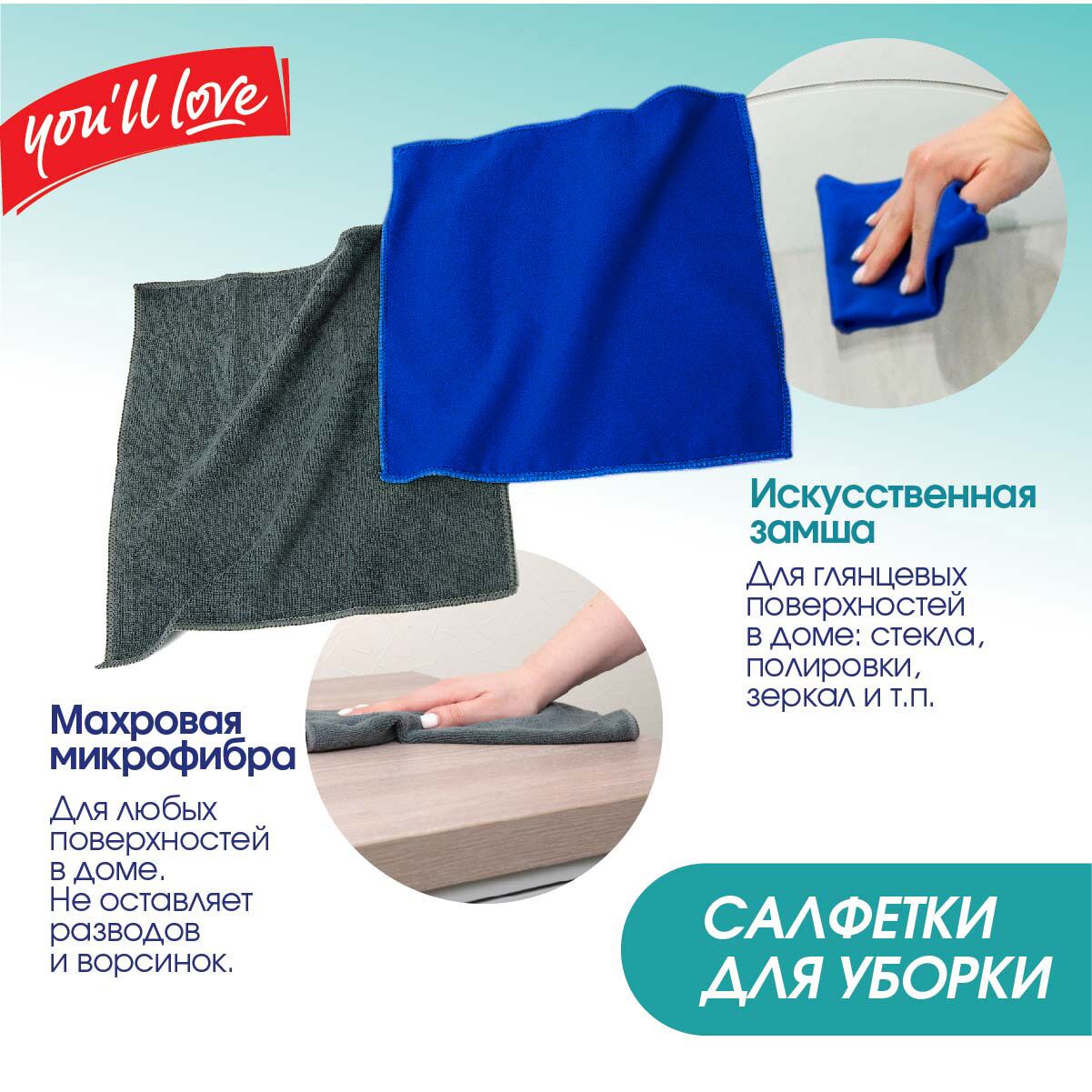 В комплекте салфетки: махровая, 300х300 мм, вес 16 г., искусственная замша, 300х300 мм, вес 16 г.