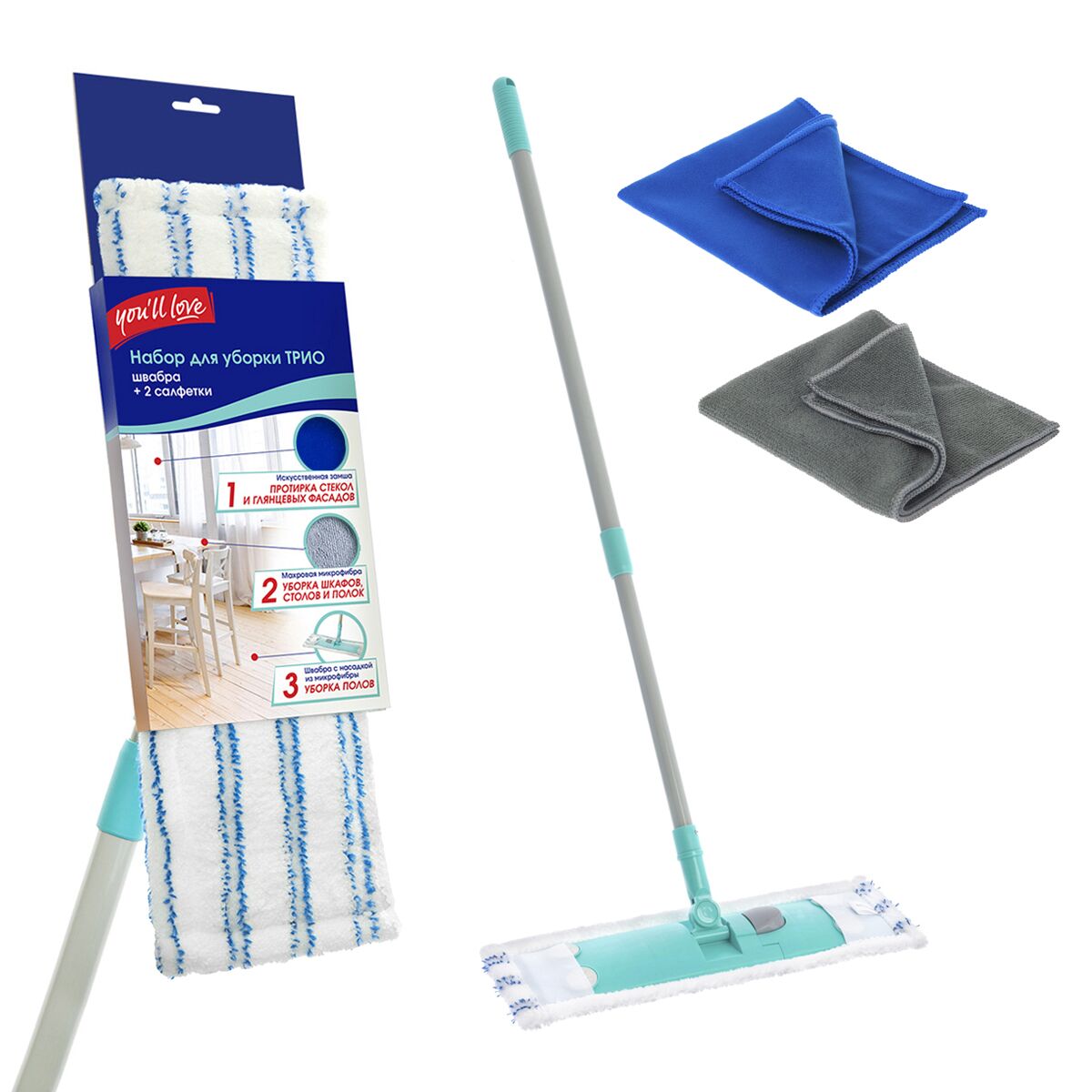 Набор для уборки ТРИО, швабра с насадкой, 2 салфетки /12/1