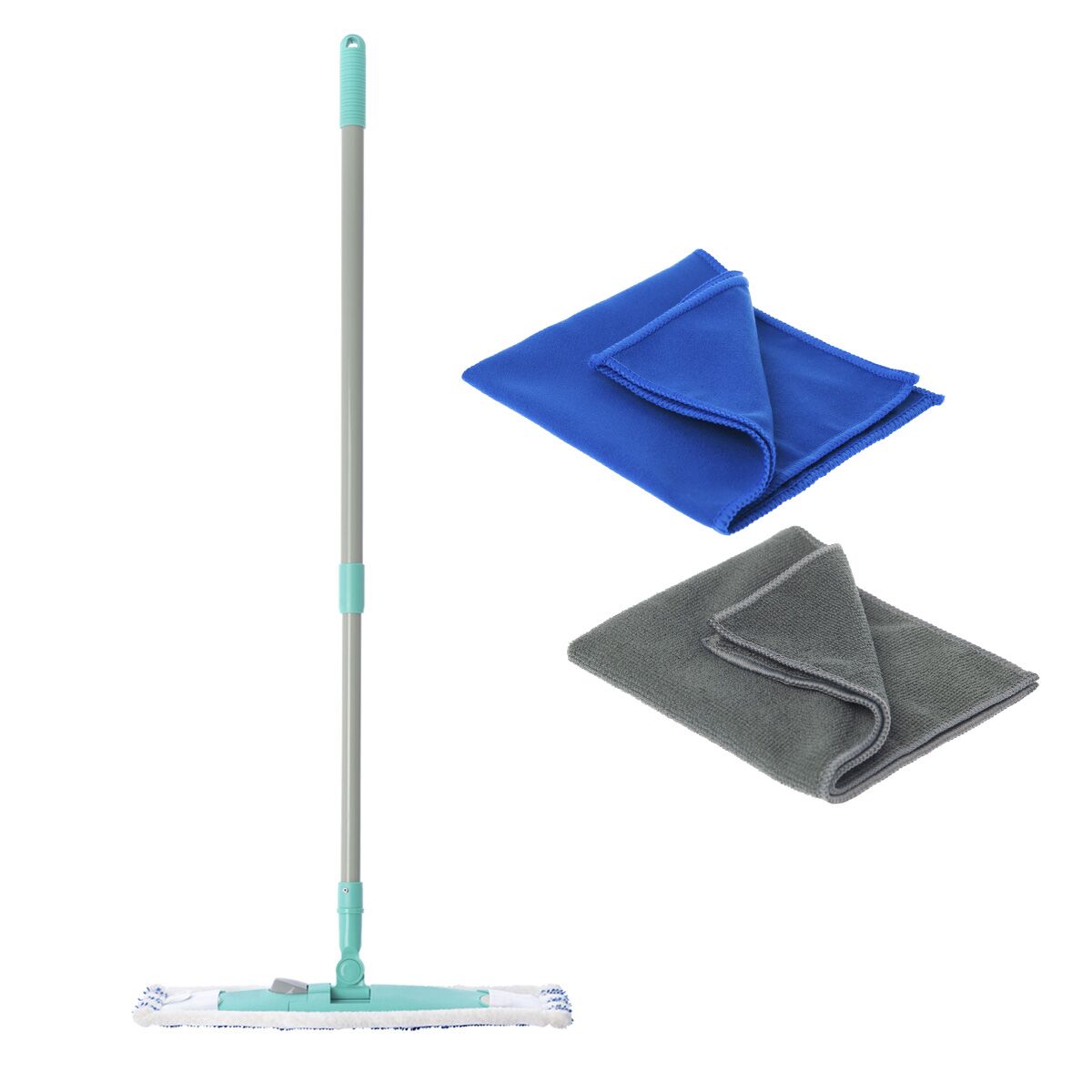Комплектация: швабра (флаундер) с насадкой из микроволокна с абразивными вставками - 1 шт, салфетка из махрового микроволокна 30 х 30 (+/-0,5) см- 1 шт, салфетка "Искусственная замша" 30 х 30 (+/-0,5) см - 1 шт