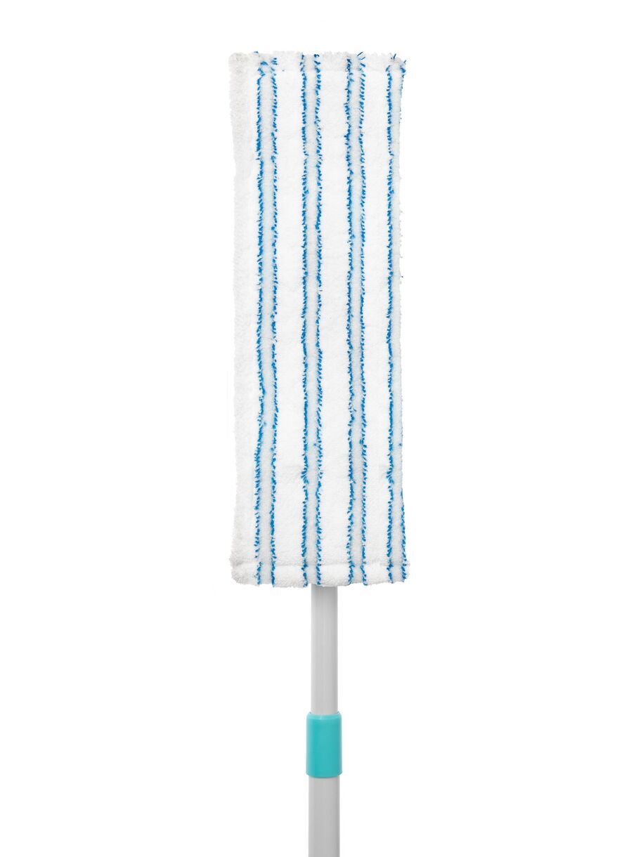 3. Универсальная швабра, подходит для любых гладких напольный покрытий: паркета, ламината, кера-мической плитки, линолеума. Рукоятка телескопическая 69 - 120 см. Для удобства хранения на конце рукоятки предусмотрен подвес. Насадка из микроволокна. Это самый современный и технологичный материал для влажной и сухой уборки. Насадка легко снимается и надевается, ее можно стирать в стиральной машине.