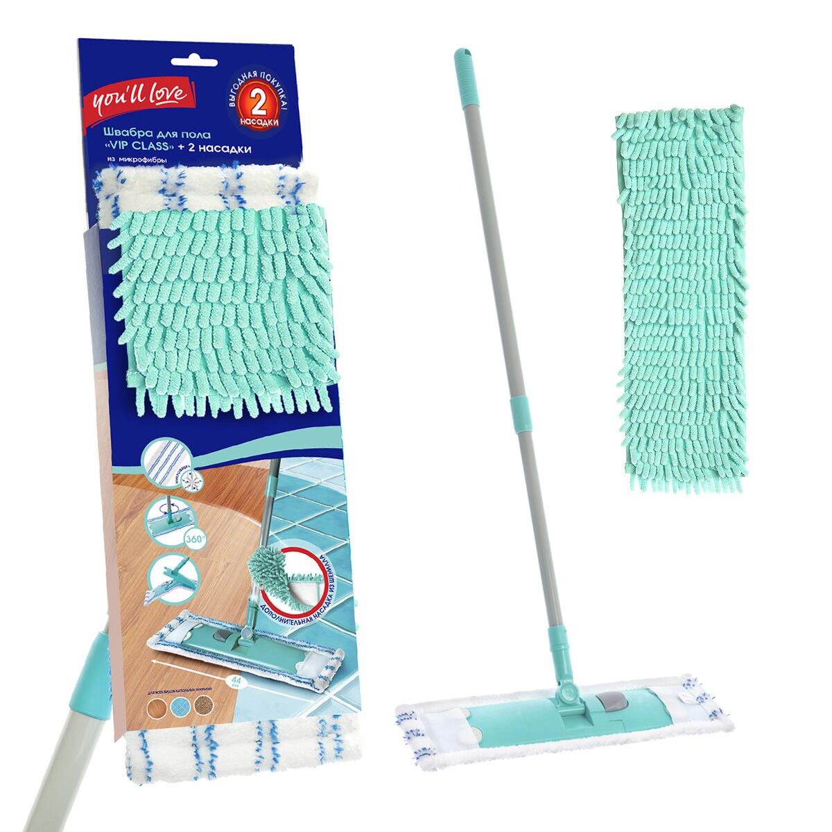 Набор: швабра и 2 насадки.
