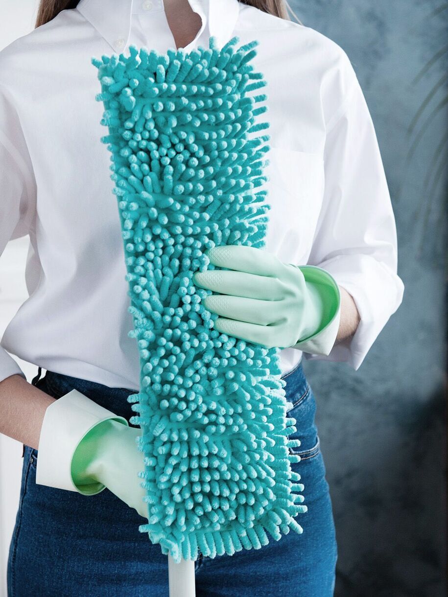 Состав: швабра - окрашенное железо, полипропилен, основная насадка (микроволокно: полиэстер 92%, полиамид (нейлон 8%), дополнительная насадка шенилл (микроволокно: полиэстер 100%)