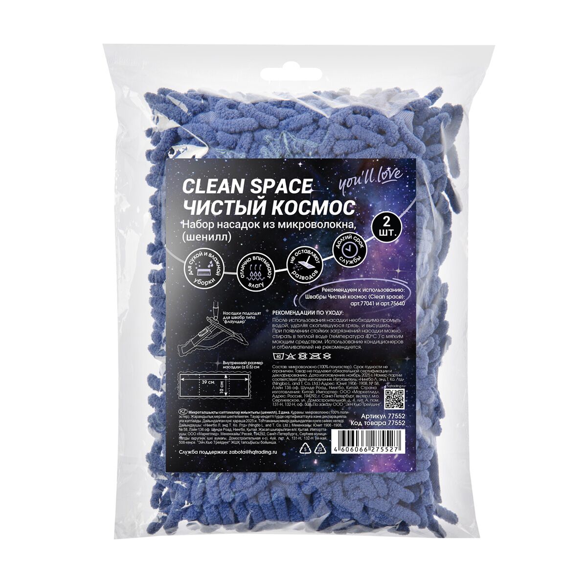 В набор входят 2 насадки шенилл лавандового цвета. Эти насадки универсальны — их можно использовать как для влажной, так и для сухой уборки. Материал прекрасно впитывает воду, легко отжимается и не оставляет разводов. Особенно эффективно удлинённые «пальчики» шенилла проникают вглубь фактурных напольных покрытий, тщательно очищая даже самые труднодоступные участки. Вы можете использовать насадки для разных зон, тем самым не допуская перекрестное закрязнение (одна насадка - комнаты и кухня, втораня насадка - санузел).
