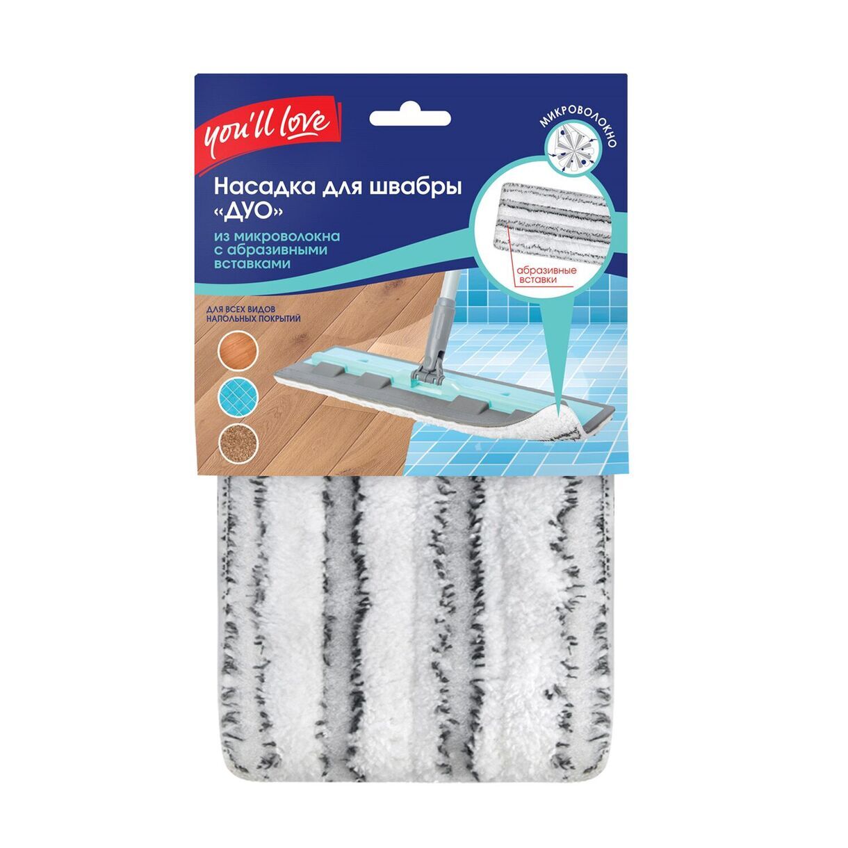 Насадка для швабры "Дуo" из микроволокна с абразивными вставками, You'll love /24/6