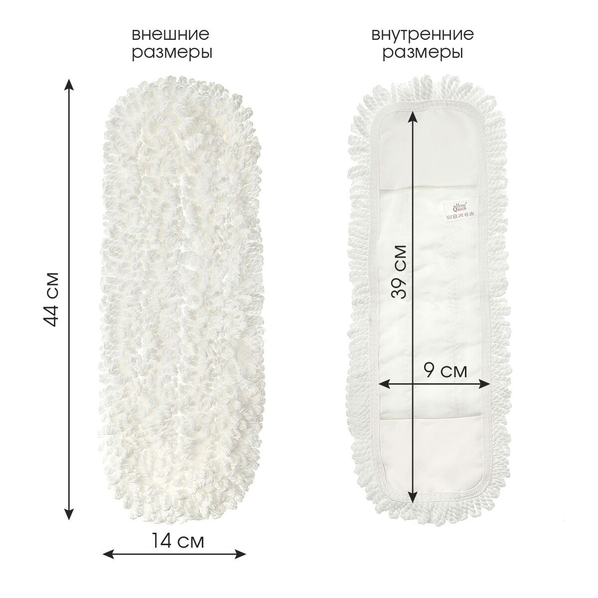 Внешний размер насадки 44х14 см, внутренний размер 39,5х11 см. Карман 8х11 см. Длина петли 2,5 см. Вес насадки 98 (+/- 5) г (без упаковки).