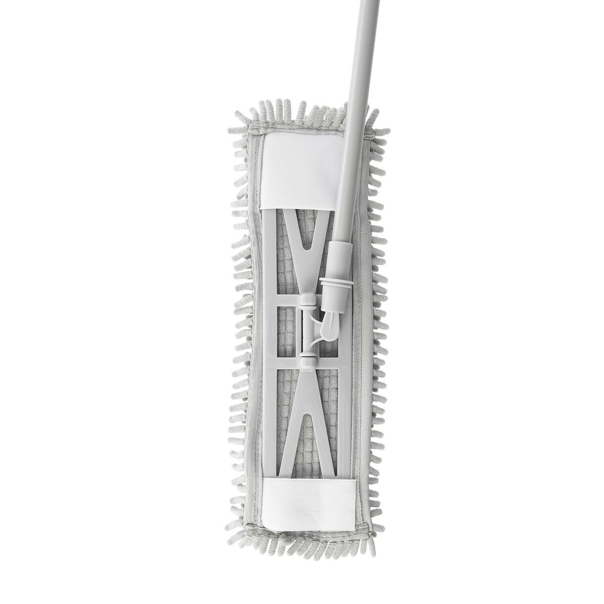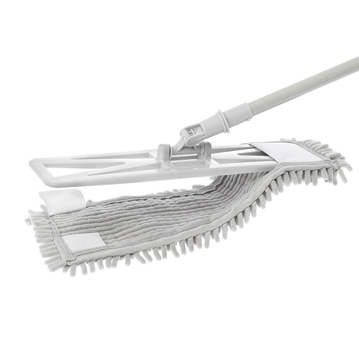 Насадка для швабры из микроволокна (шенилл), можно использовать как для влажной, так и для сухой уборки, а также для полировки поверхностей, в процессе уборки материал хорошо впитывает воду, легко отжимается, благодаря чему при мытье не оставляет мокрых пятен и разводов, удлиненные «пальчики» шенилл особенно тщательно вычищают фактурные напольные поверхности.