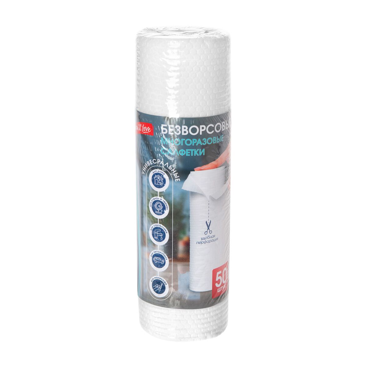 Безворсовые многоразовые салфетки в рулоне, 20*25 см, 50 шт, You'll love /48/8