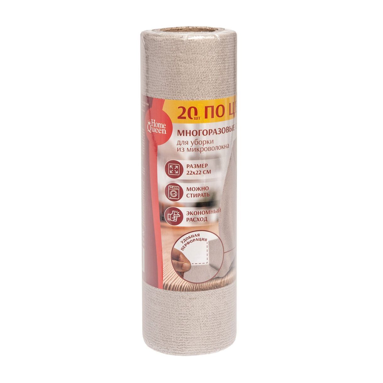 Многоразовые салфетки для уборки из микроволокна, 20 шт в рулоне, Home Queen /48/8