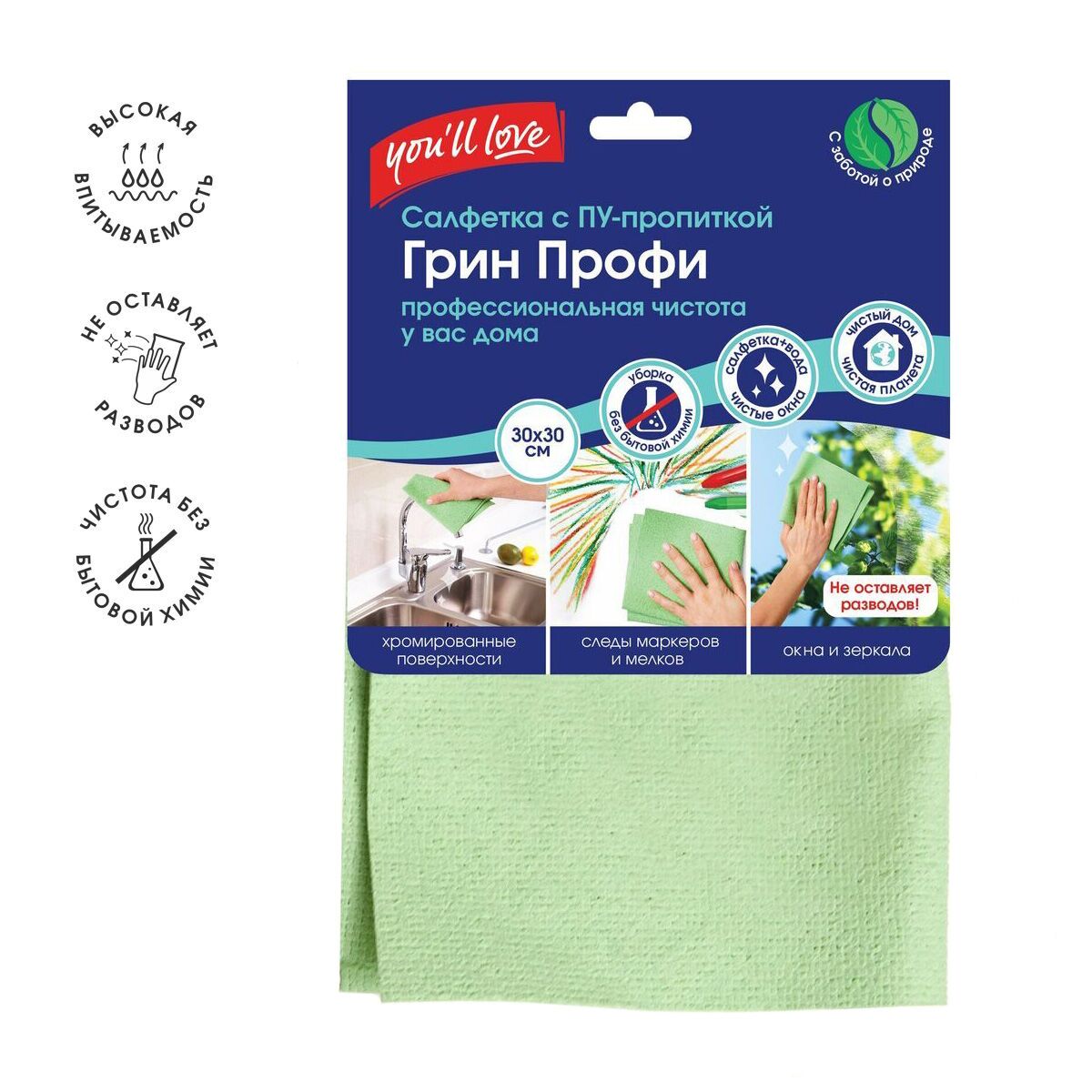 Инновационная салфетка Грин Профи с полимерным покрытием (полиуретан), разработанная для профессиональной серии, теперь доступна каждому.