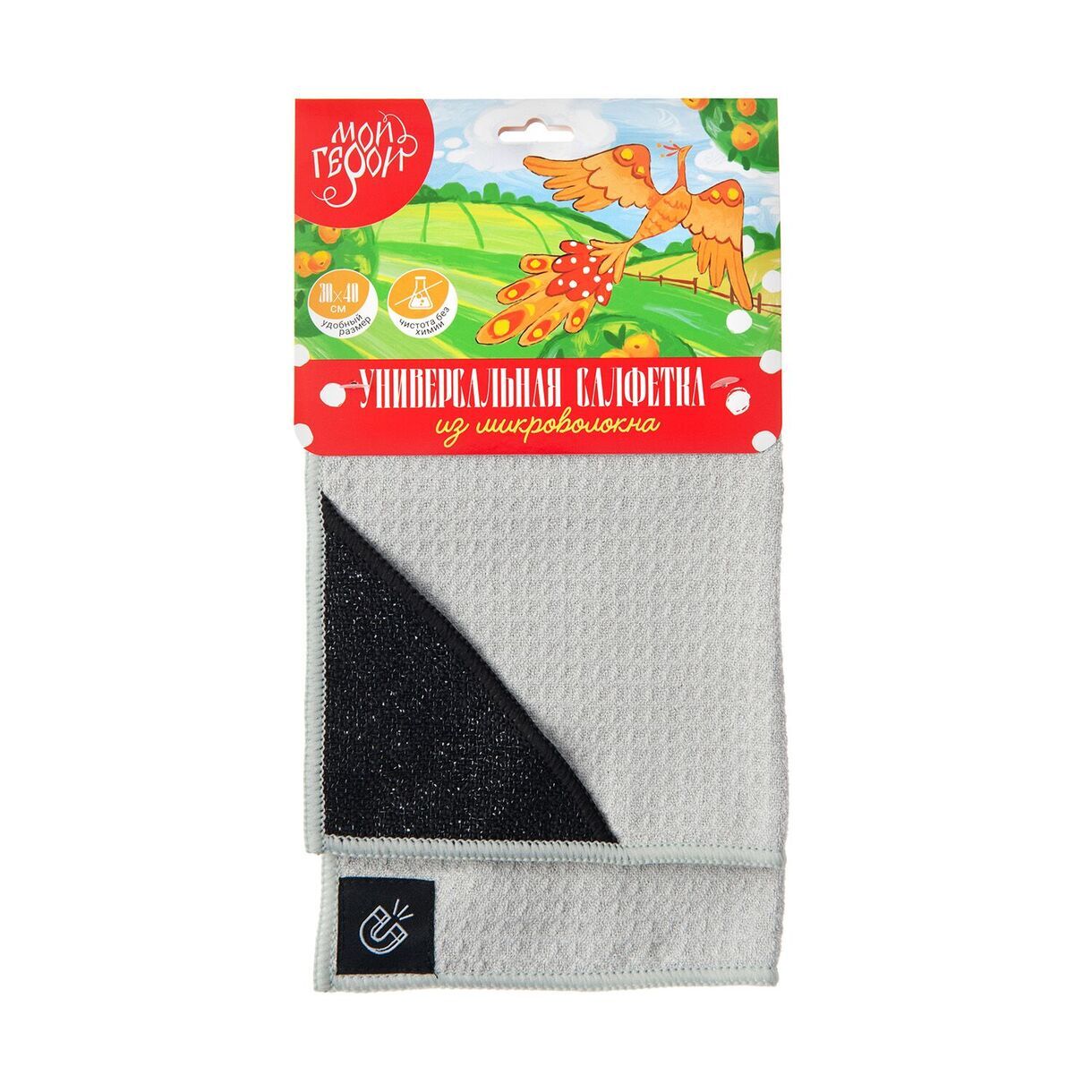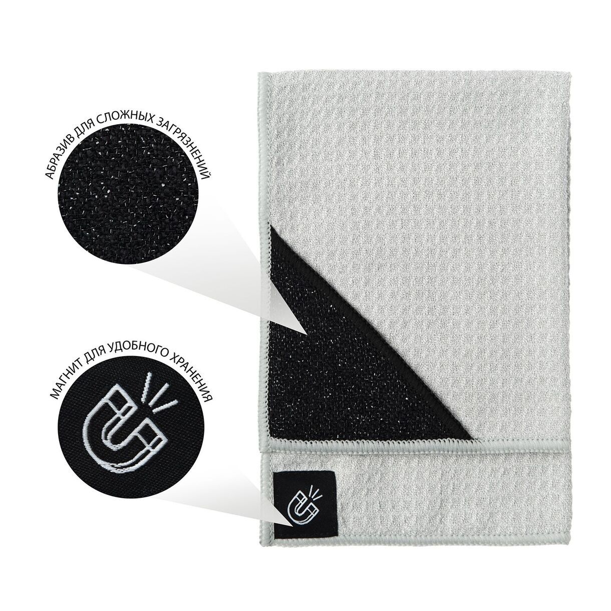 Универсальная салфетка из микроволокна, обеспечивающего эффективную уборку даже без моющих средств. Оснащена специальным абразивным уголком для устранения сложных загрязнений и магнитом для удобного хранения (подвеса).