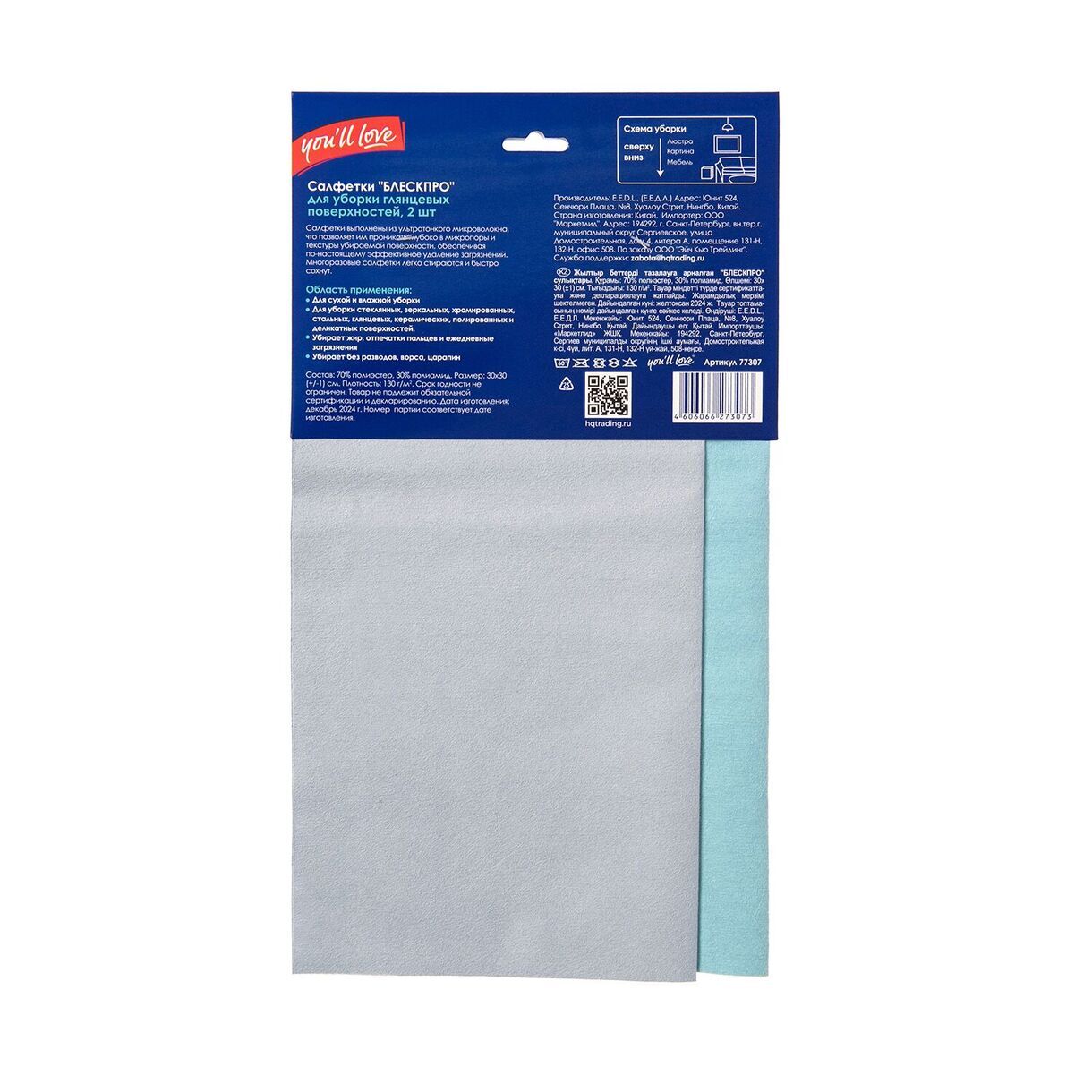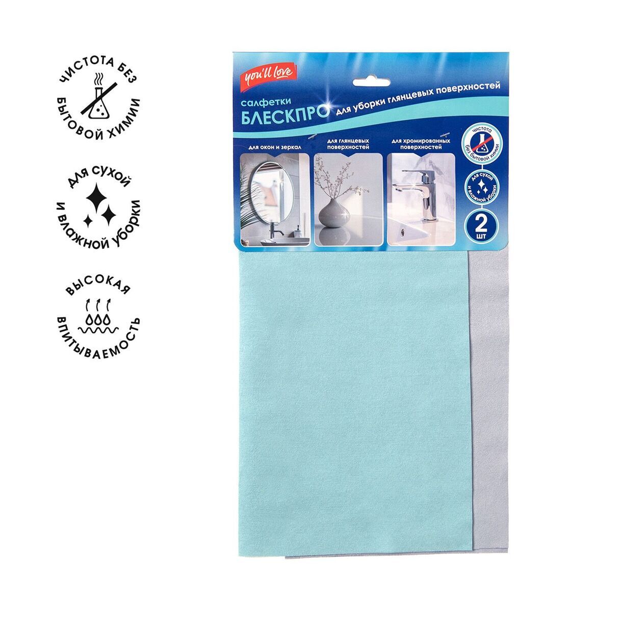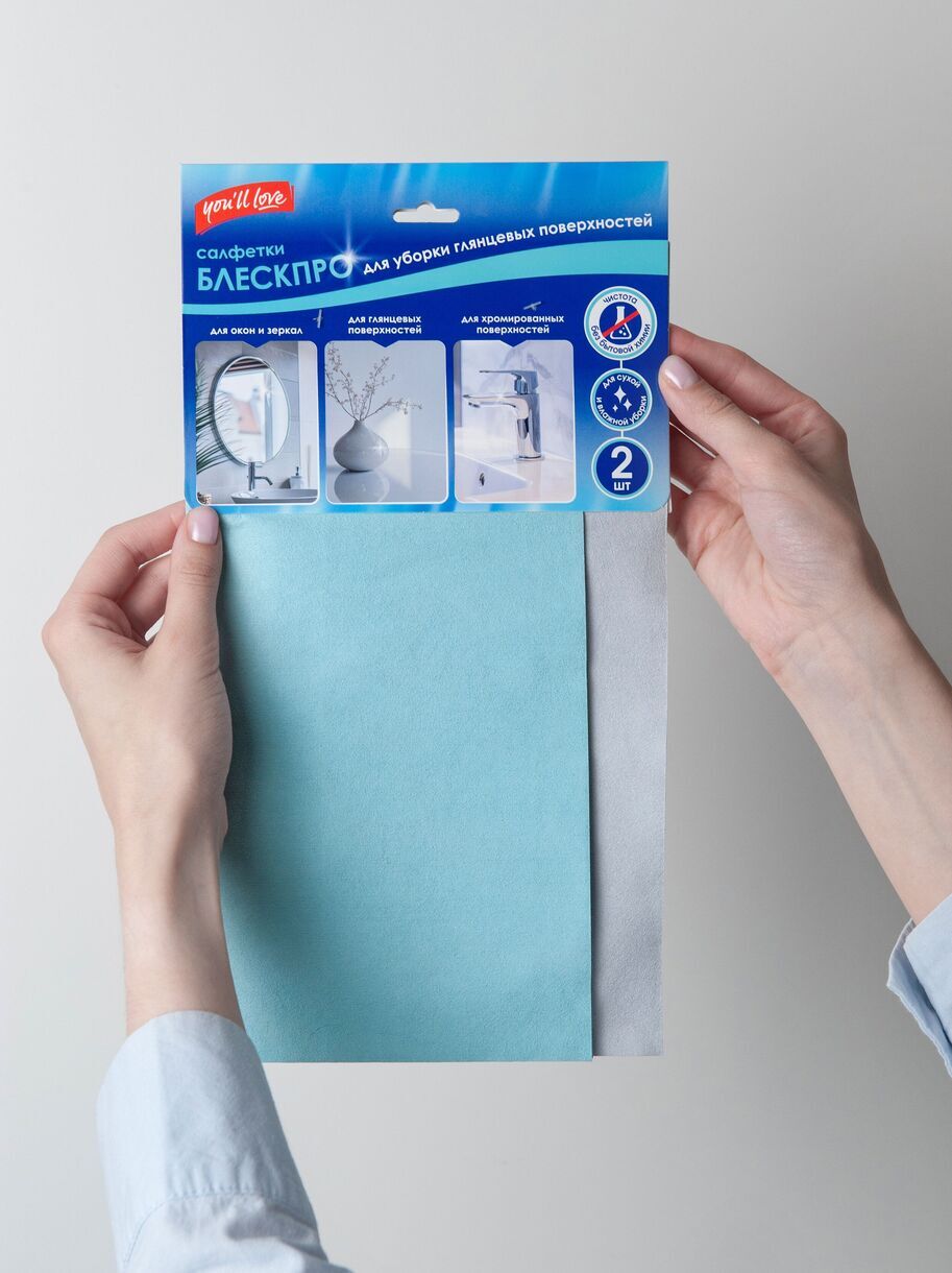 Салфетки "БЛЕСКПРО" для уборки глянцевых поверхностей (2 шт), 30х30 см, You'll love /50/10