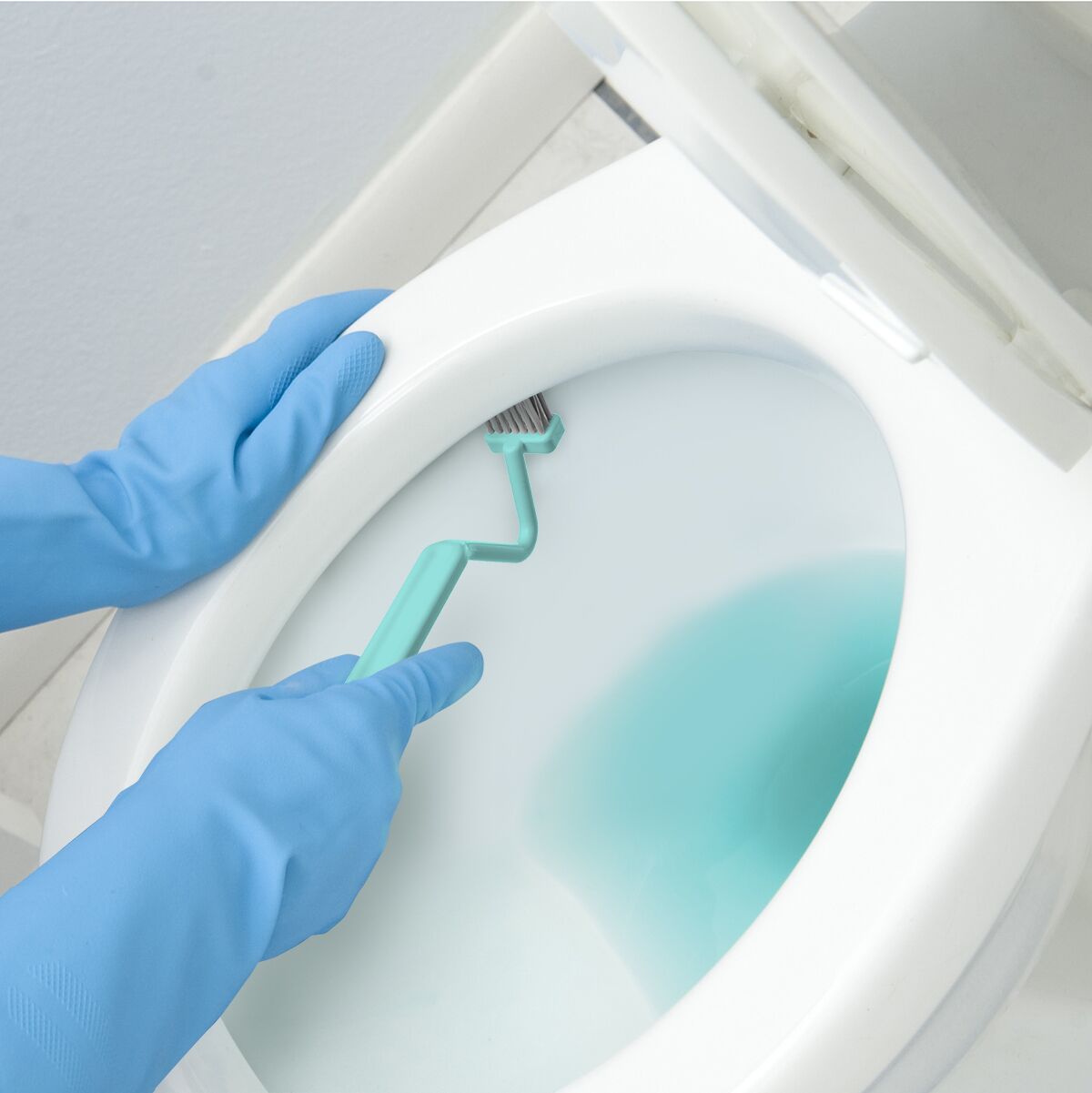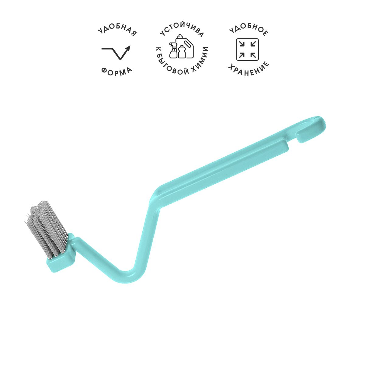 Благодаря специально изогнутой форме щётка для сантехники удаляет загрязнения даже в самых труднодоступных местах, например, под ободком унитаза. Износостойкие материалы не боятся агрессивной бытовой химии, что гарантирует длительный срок службы. Можно подвесить для хранения с помощью крючка на рукоятке.
