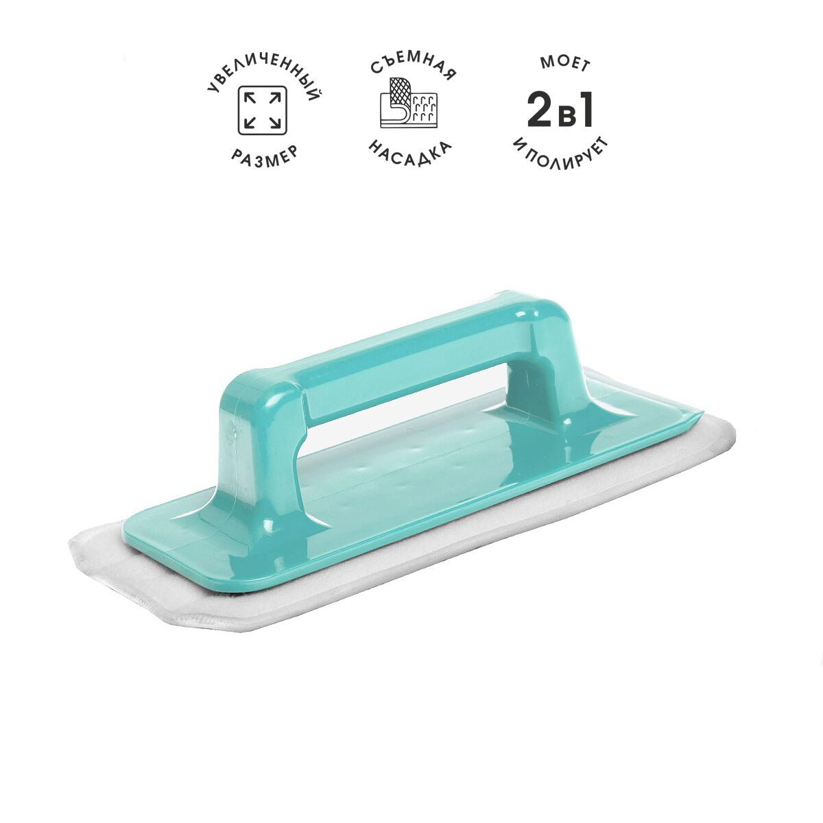 Универсальная щетка оснащена удобной эргономичной рукояткой и сменной насадкой из микроволокна. Благодаря уникальным свойствам микроволокна щетка не оставляет разводов и ворсинок, хорошо впитывает влагу. Абразивные вставки способствуют быстрому очищению поверхности от различного вида загрязнений.