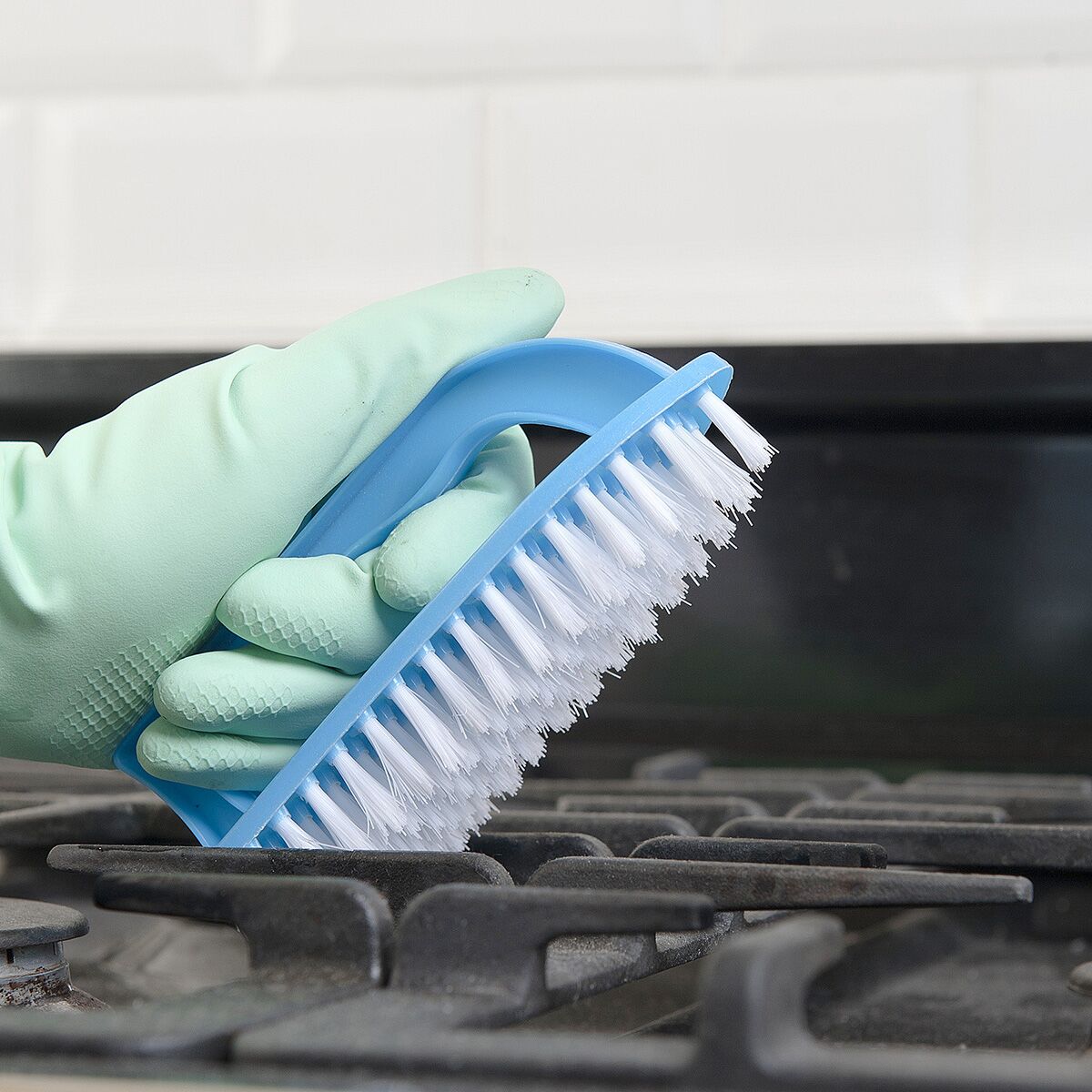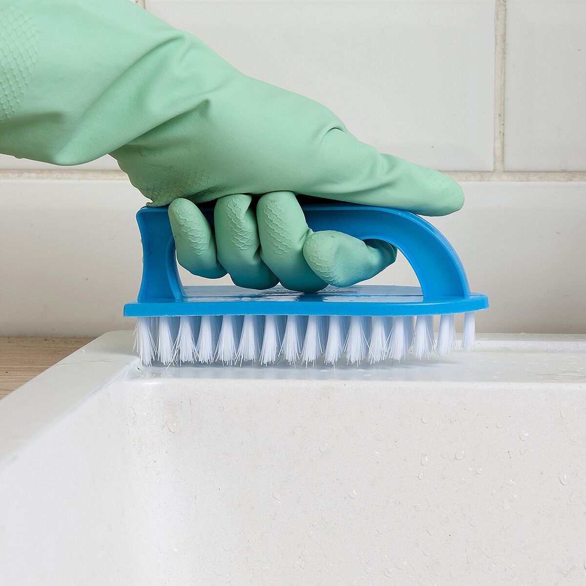 Универсальная щетка для очистки поверхностей ванной комнаты и кухни. Оснащена рукояткой с анатомическими углублениями для надежного захвата и комфортного использования.