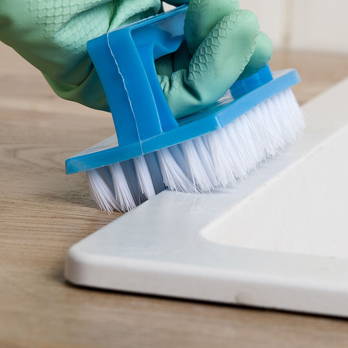 Универсальная щетка для очистки поверхностей ванной комнаты и кухни. Оснащена рукояткой с анатомическими углублениями для надежного захвата и комфортного использования.