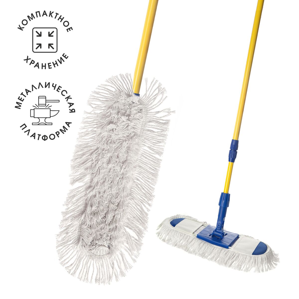 Состав: швабра - окрашенное железо, полипропилен;; насадка - хлопок, полиэстер (изнаночная сторона насадки)