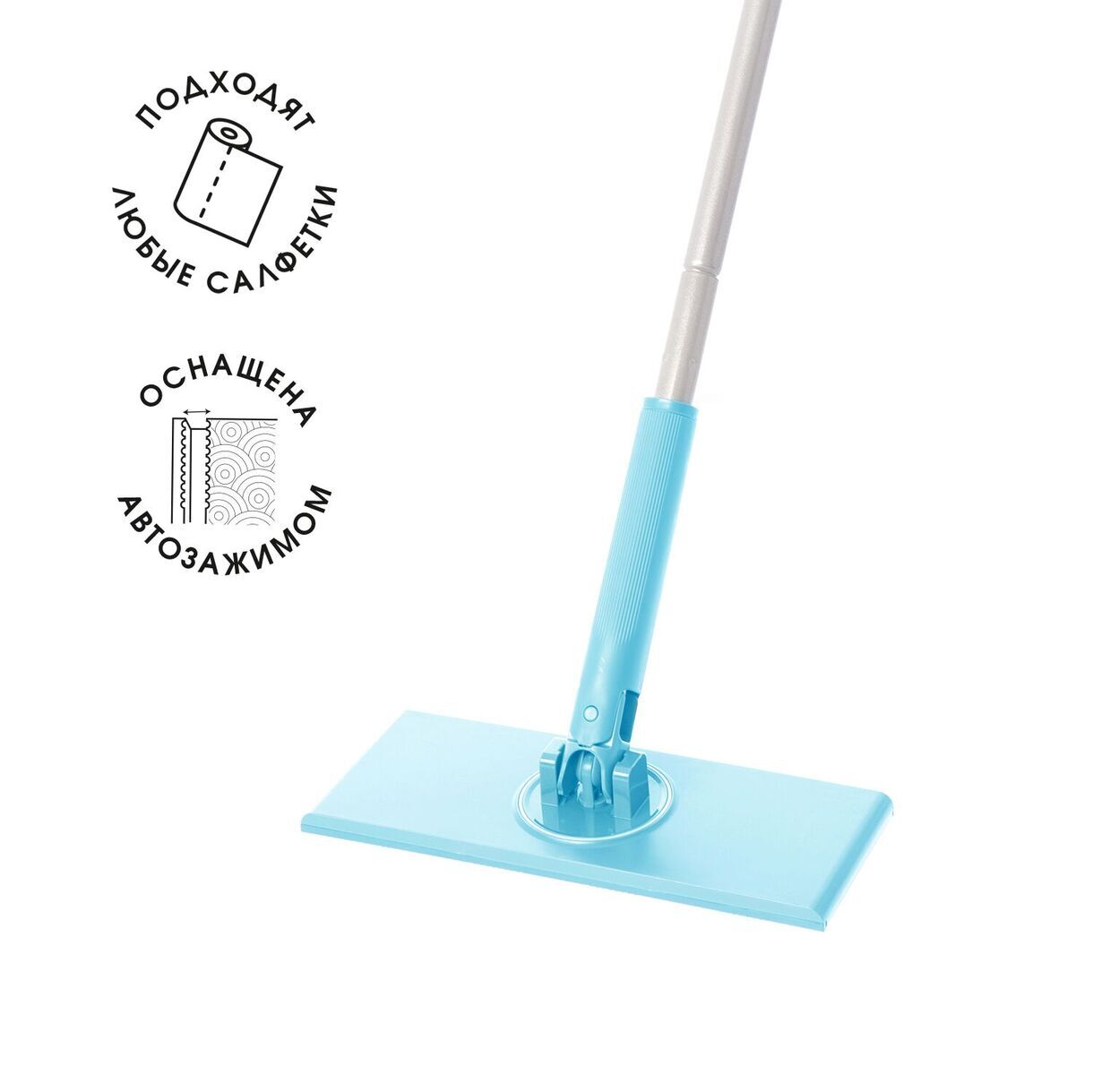 Швабра с автозажимом станет незаменимым помощником в поддержании чистоты вашего дома. Уникальная конструкция платформы позволяет использовать любую салфетку в качестве насадки, будь то салфетка в рулоне или любая другая.