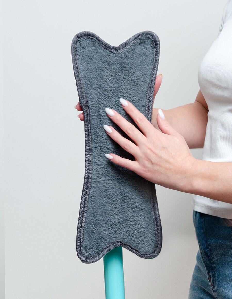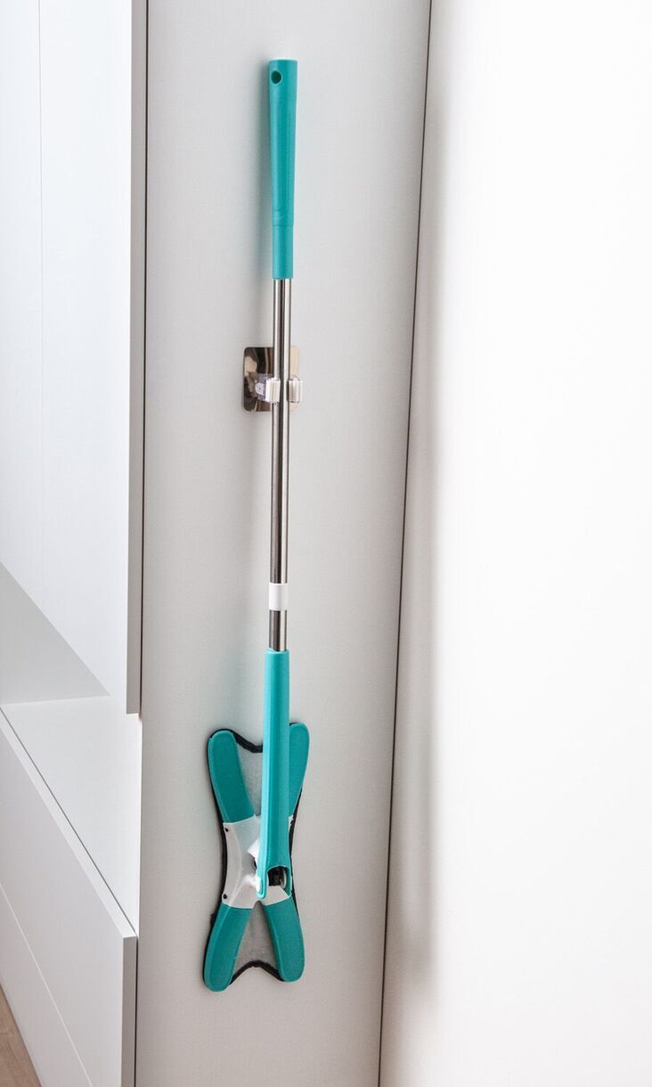 Швабра с насадкой из микроволокна позволяет очистить любые поверхности от пыли и грязи без помощи химических средств, может применяться как для сухой, так и для влажной уборки. Основным преимуществом данной швабры является механизм бесконтактного отжима, который позволит вам легко и быстро отжать насадку не пачкая при этом руки.