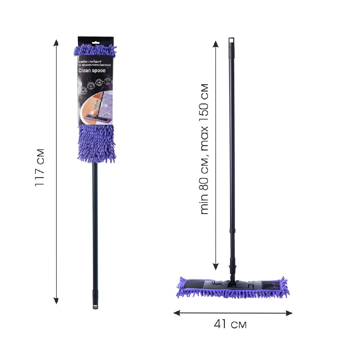 Общая высота швабры: 157 (+/-1) см.
