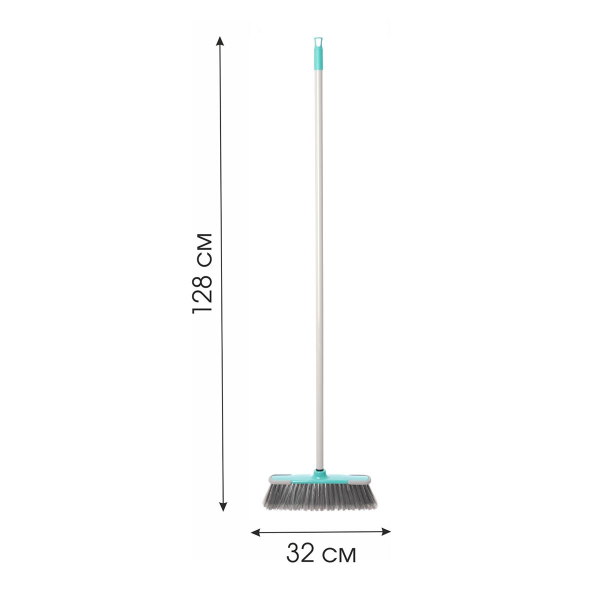 Модель: швабра-щетка (для сухой уборки).Длина рукоятки (цельная) 119 (+/-0,5) см. Размер платформы 27,5*5,2 см. Общая высота швабры 128 (+/-1) см.Вес 405 (+/- 5) г (без упаковки).Щетка - 245+-5г, рукоятка - 150+-5г.Способ крепления платформы: резьбаСостав: окрашенное железо, полипропилен, ТПР, полиэтилентерефталат.
