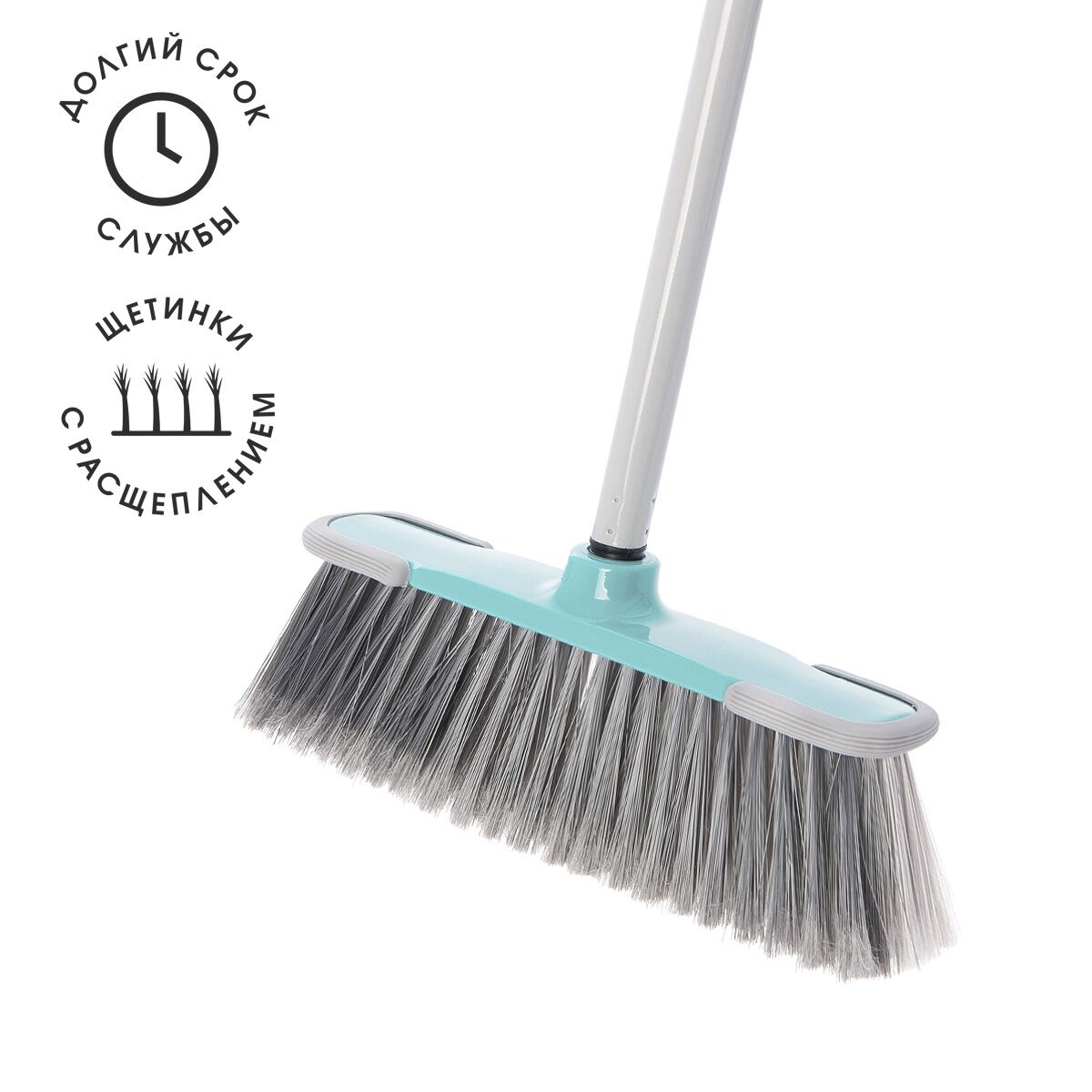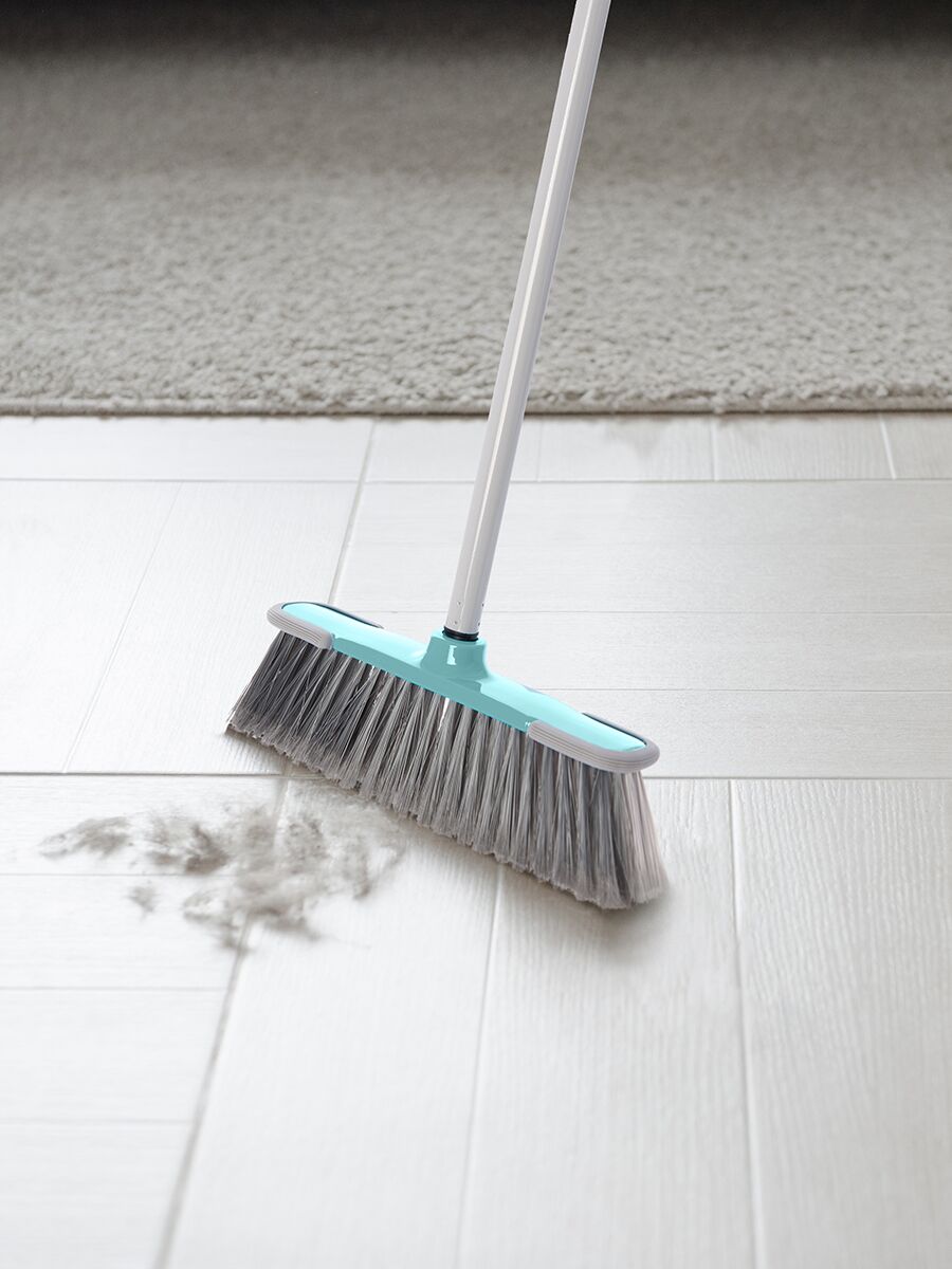 Универсальная швабра-метла для сухой уборки внутри помещений, резиновые вставки по краям платформы для предотвращения повреждения мебели.