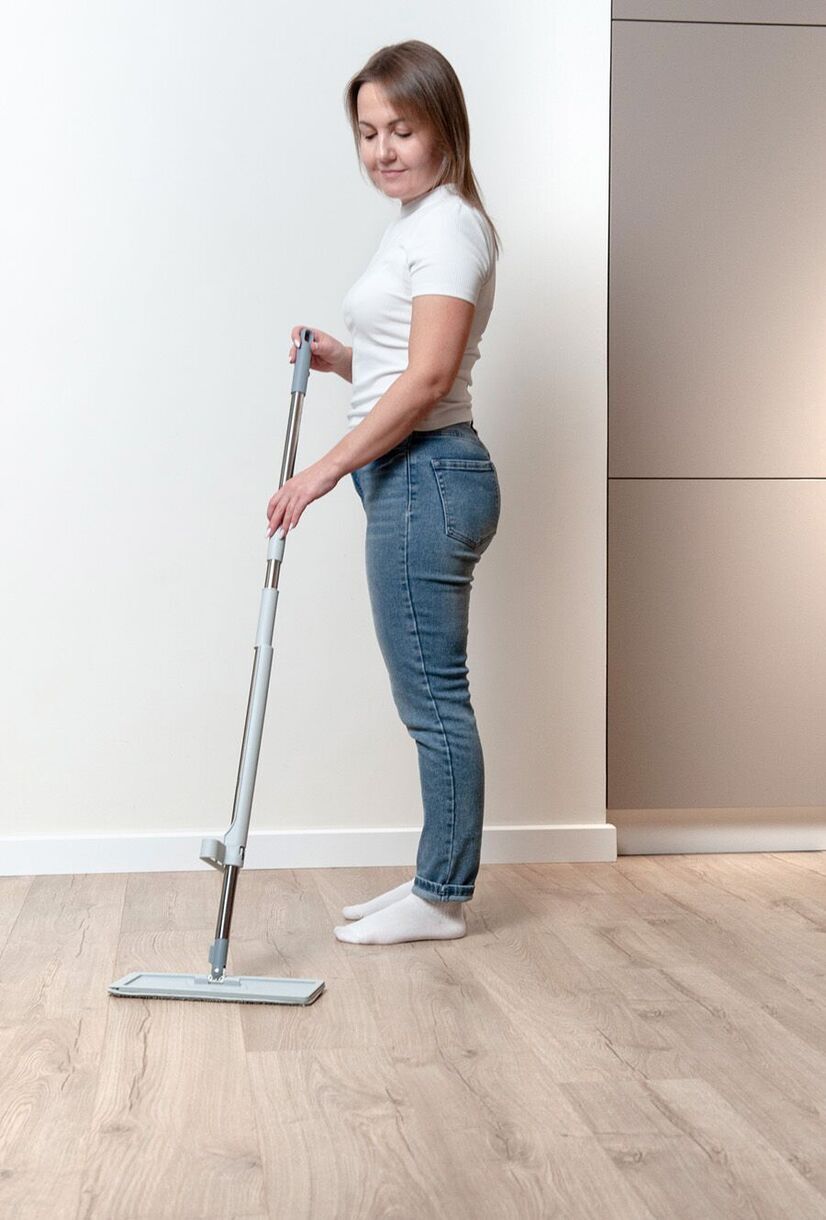 Комплектация - швабра из 3х сборных частей+ насадка из микроволокна