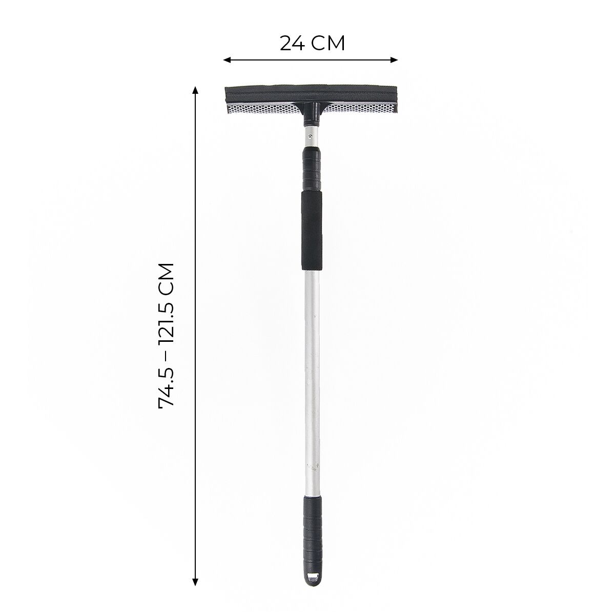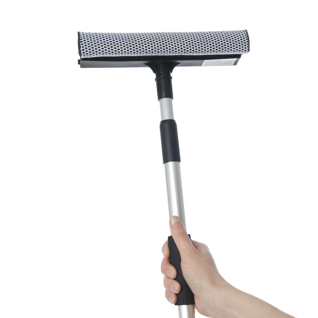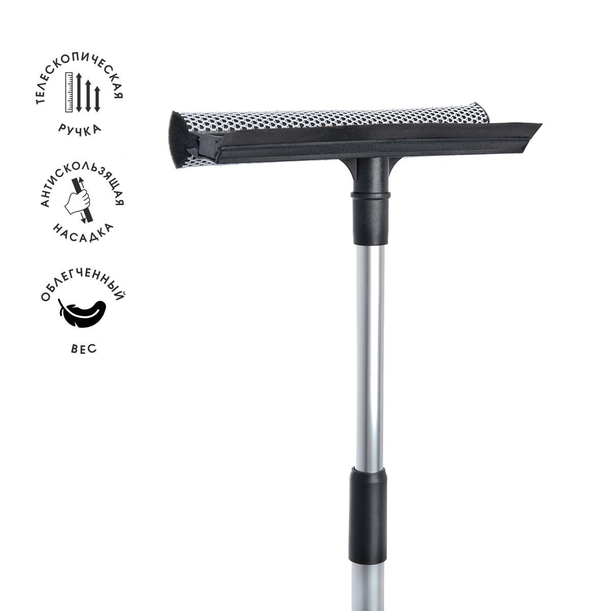 Комфортный, благодаря легкому весу и специальной противоскользящей накладке для рук. Пористая структура поролона способствует пенообразованию и экономит моющее средство, а полиэстеровая сетка задерживает  грязь. Телескопическая рукоятка регулируется по высоте и позволяет дотянуться до верхнего края окон без помощи стремянки.