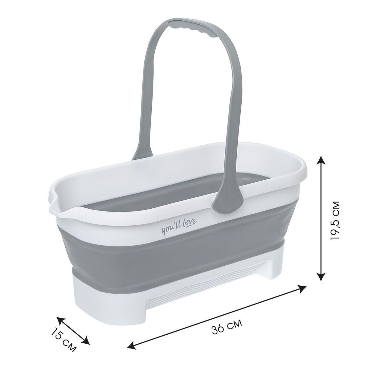 Размеры ведра в разложенном виде: 36 х 15 х 19,5 см