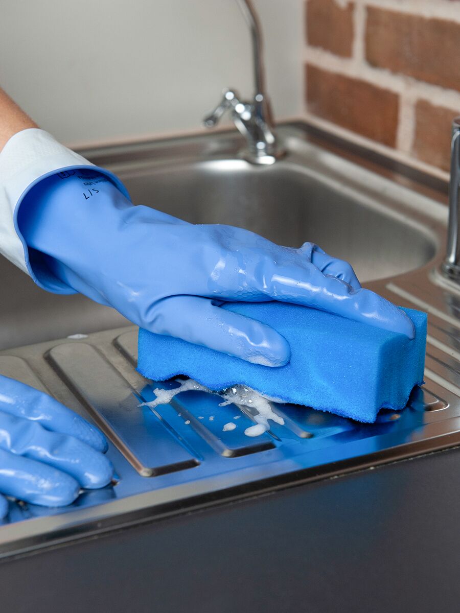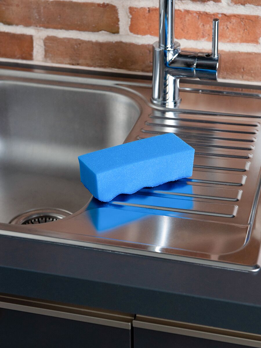 * Губка легко лежит в руке, а ее форма обеспечивает удобный захват для работы под любым углом.