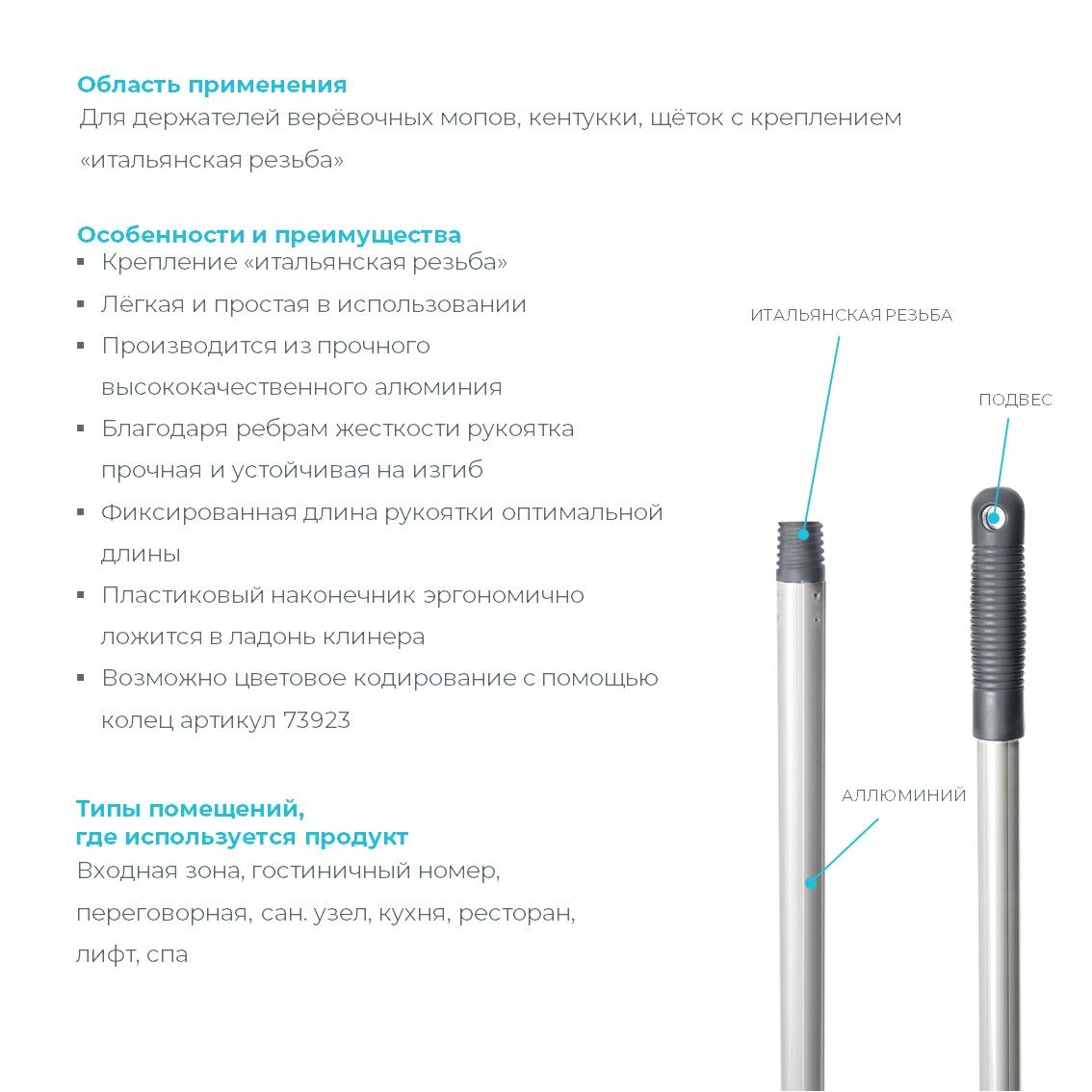 * Для держателей верёвочных мопов, кентукки, щёток, имеющих крепление «итальянская резьба»