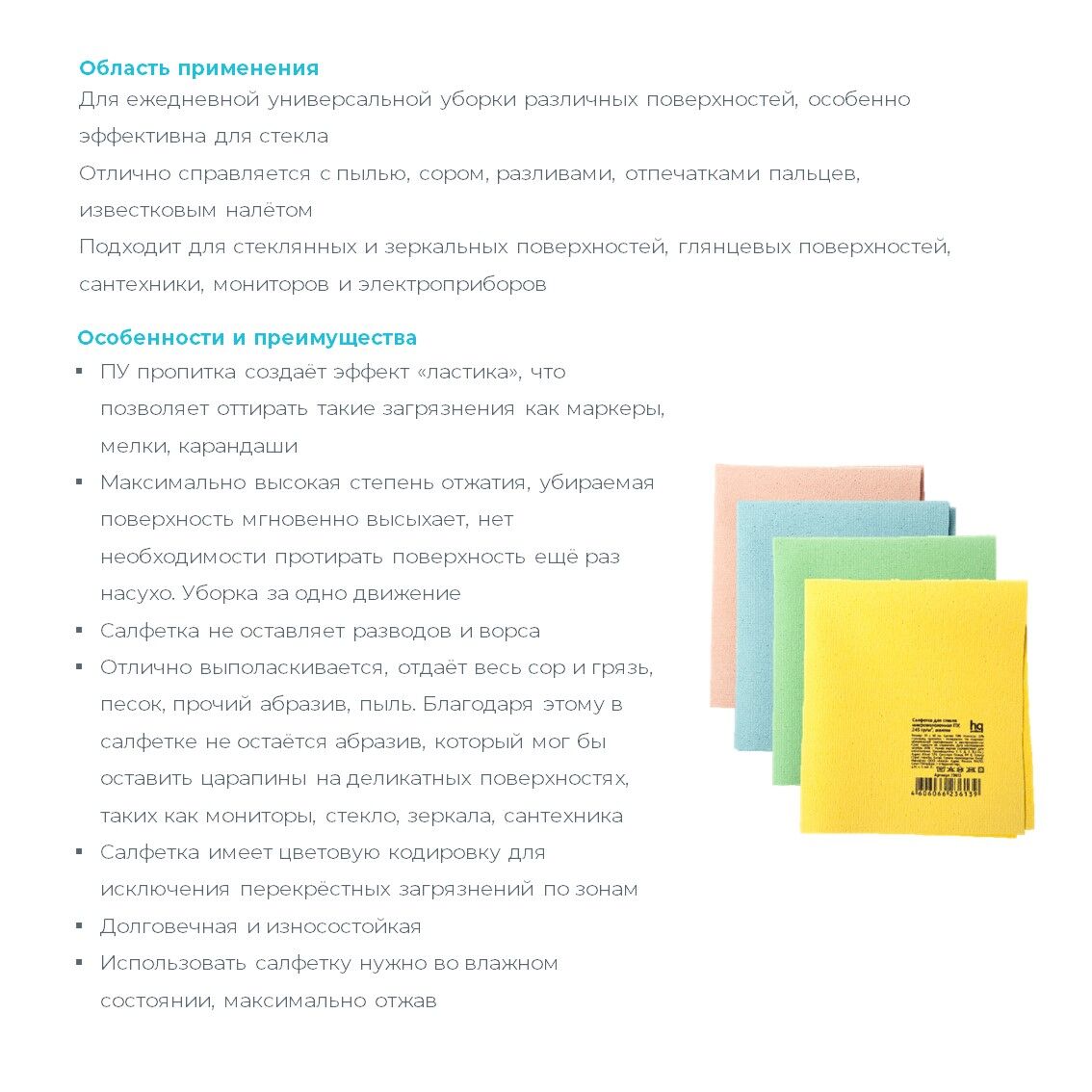 * Салфетка имеет цветовую кодировку для исключения перекрёстных загрязнений по зонам