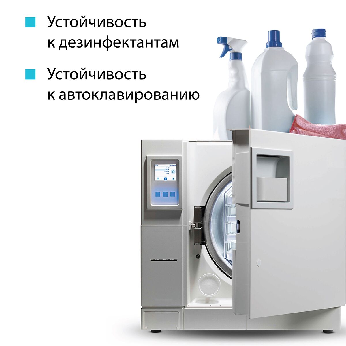 300 циклов стирки. Впитываемость 400%. Подходит для структурированных и неструктурированных поверхностей; легких, средних загрязнений. Устойчивость к щелочным и кислотосодержащим моющим средствам; устойчивость к дезинфектантам; устойчивость к автоклавированию.