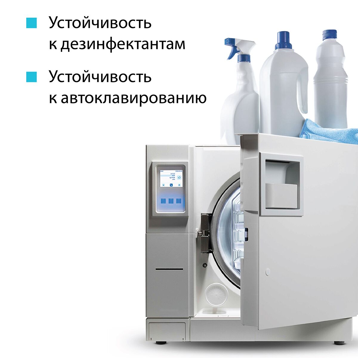 300 циклов стирки. Впитываемость 400%. Подходит для структурированных и неструктурированных поверхностей; легких, средних загрязнений. Устойчивость к щелочным и кислотосодержащим моющим средствам; устойчивость к дезинфектантам; устойчивость к автоклавированию.