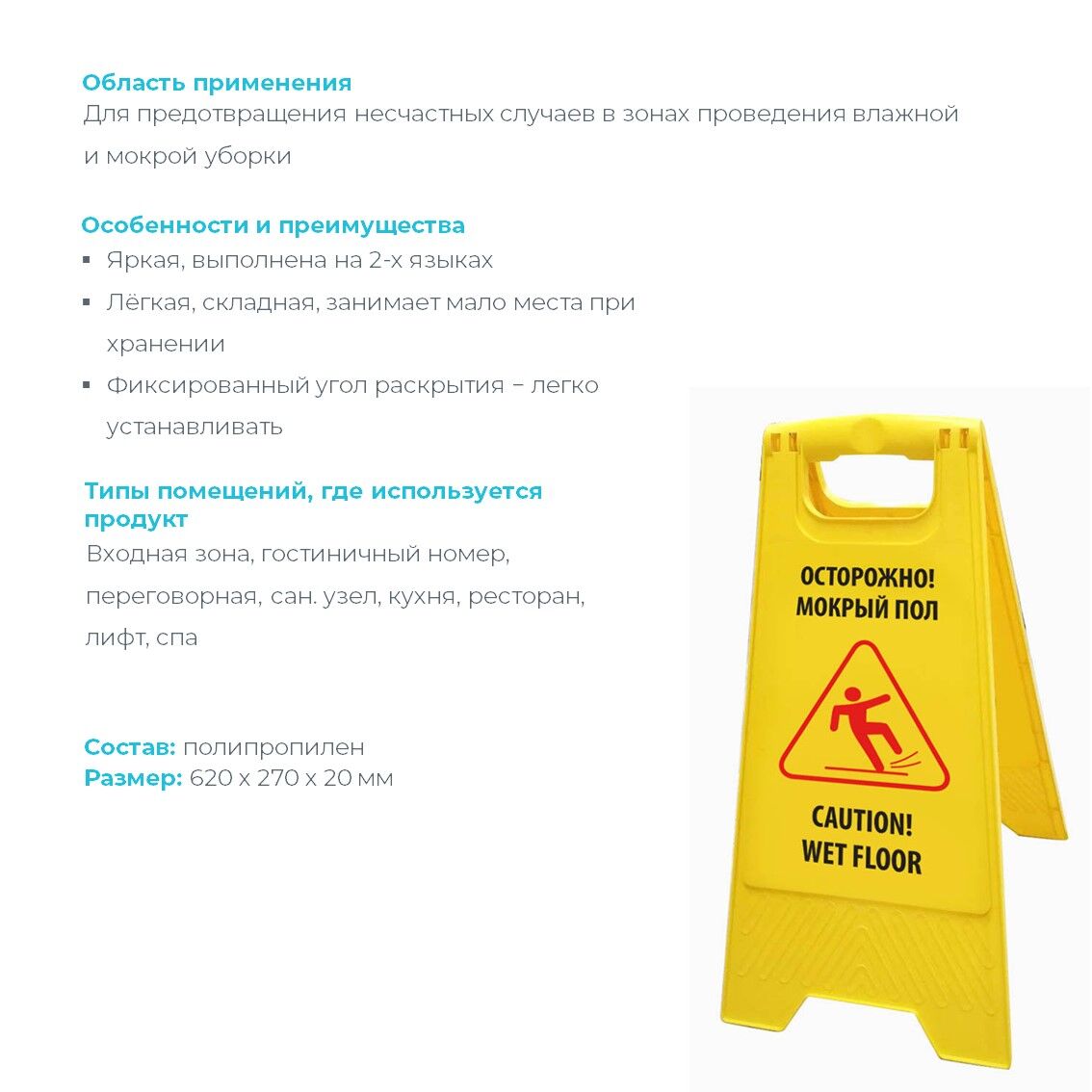 * Для предотвращения несчастных случаев в зонах проведения влажной и мокрой уборки