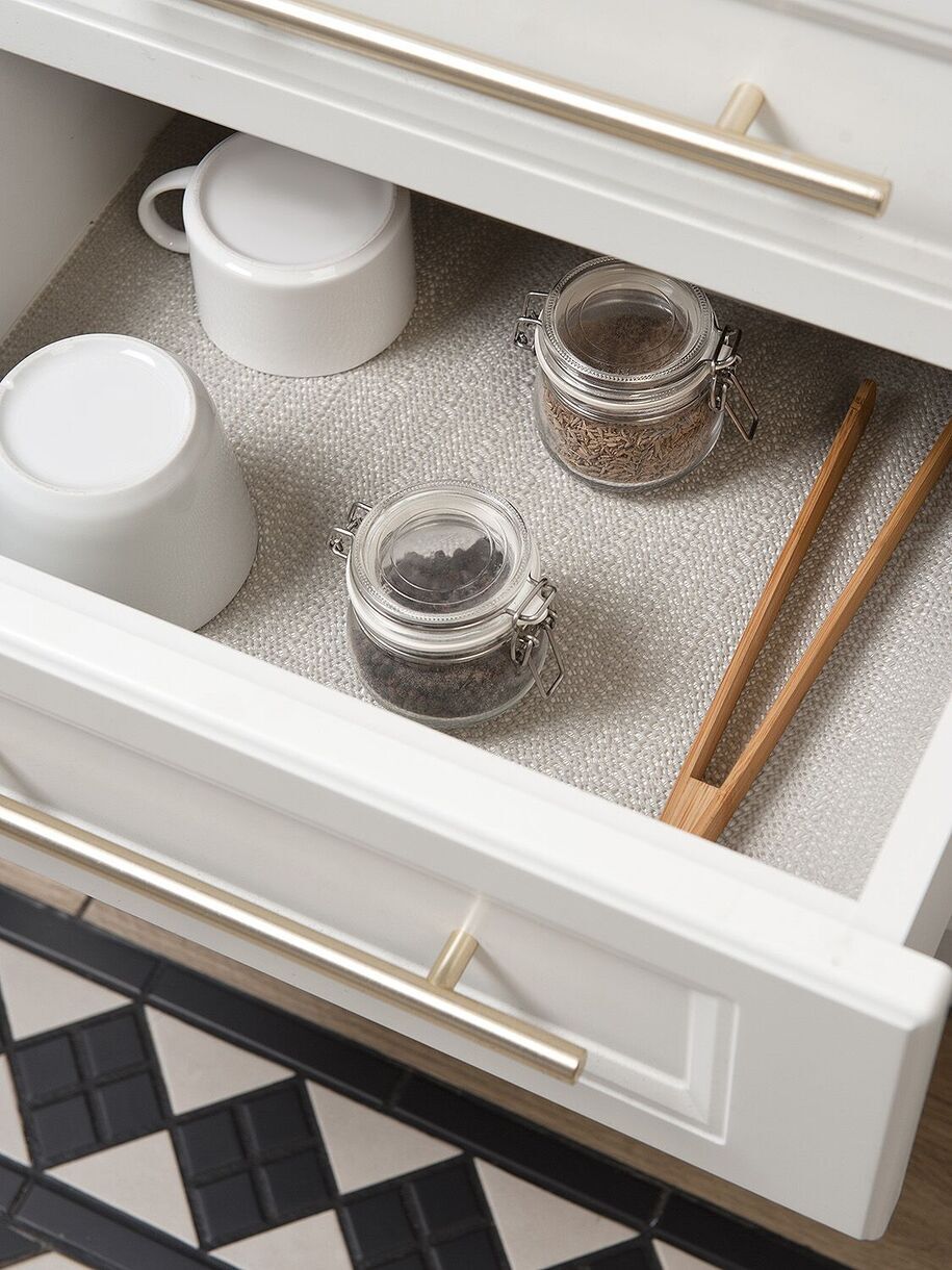Размеры: ширина 30см, длина 150см. Состав: ПВХ. Салфетка обеспечивает поддержание порядка и чистоты: защищает от загрязнений, препятствует быстрому износу поверхностей, препятствует скольжению. Серый цвет является максимально нейтральным, поэтому легко впишется в любой интерьер. Ячеистая фактура салфетки обеспечивает надежное удержание предметов на поверхности. При необходимости салфетку легко обрезать ножницами под нужный размер. А нарезав салфетку длиной по 40-50см вы получите идеальные сервировочные салфетки. Уход: салфетка не требует особого ухода. При необходимости ее можно промыть теплой водой с использованием моющих средств и мягкой губки. Просушить вдали от нагревательных приборов или с помощью бумажного или хлопкового полотенца. Срок годности не ограничен.