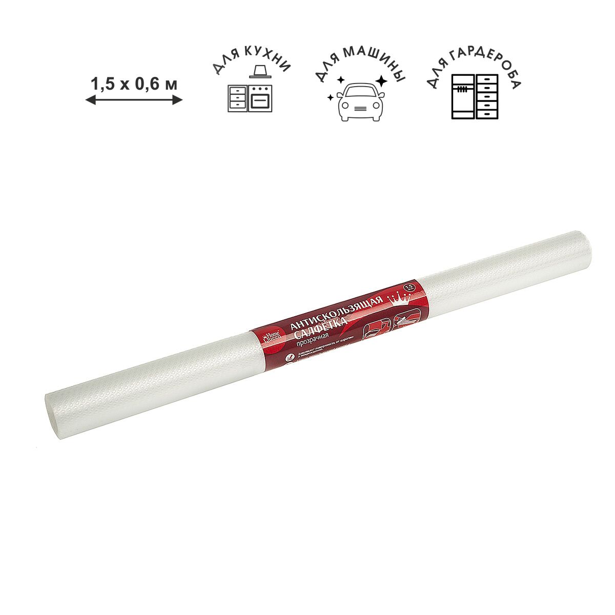 Размеры: ширина 60см, длина 150см. Состав: ЕВА. Салфетка обеспечивает поддержание порядка и чистоты: защищает от загрязнений, препятствует быстрому износу поверхностей, препятствует скольжению. Прозрачный цвет позволит использовать салфетку в любом интерьере, не нарушая стилевую концепцию. Специальная фактура салфетки обеспечивает надежное удержание предметов на поверхности. Увеличенная ширина салфетки позволяет использовать ее на объёмных поверхностях. При необходимости салфетку легко обрезать ножницами под нужный размер. Уход: салфетка не требует особого ухода. При необходимости ее можно промыть теплой водой с использованием моющих средств и мягкой губки. Просушить вдали от нагревательных приборов или с помощью бумажного или хлопкового полотенца. Срок годности не ограничен.