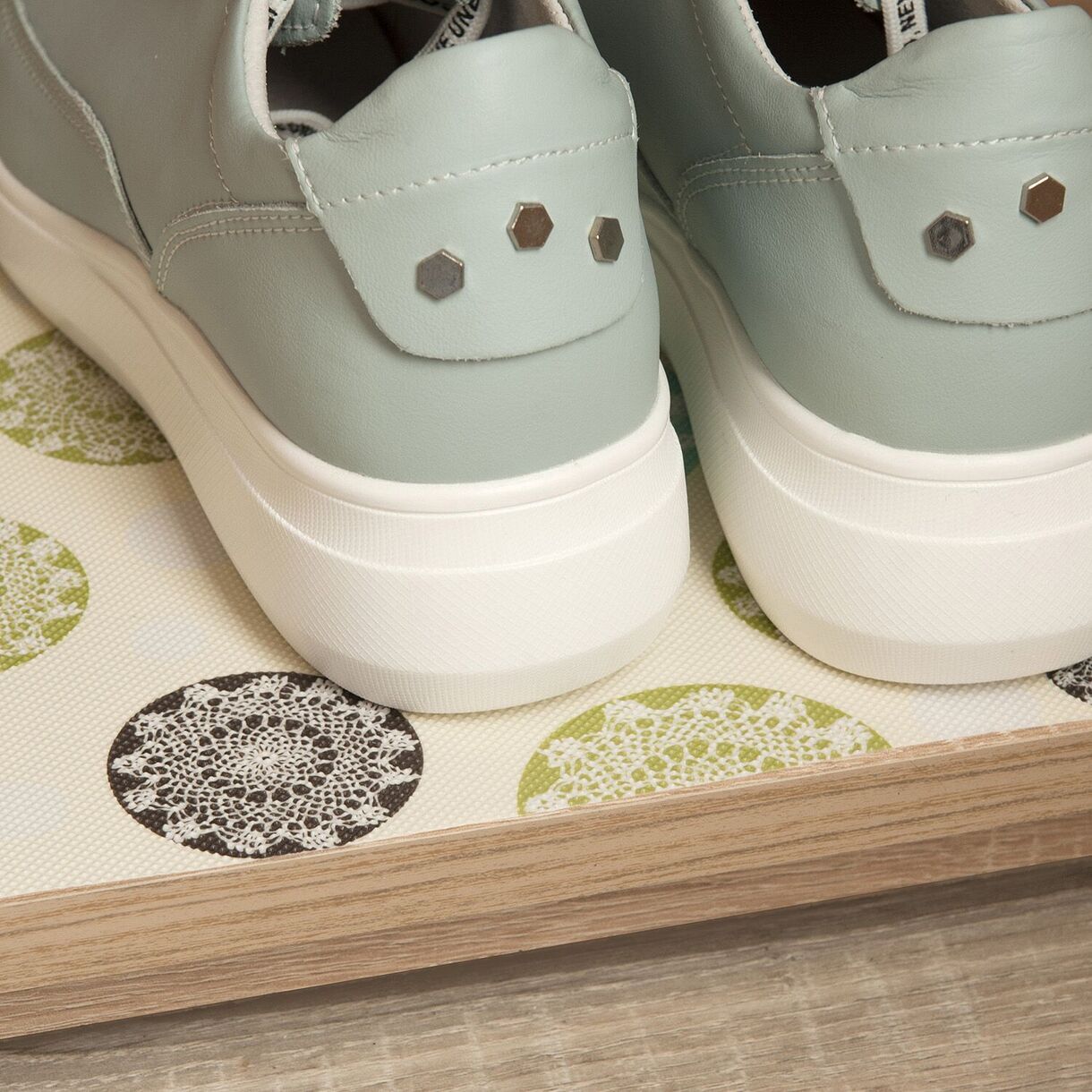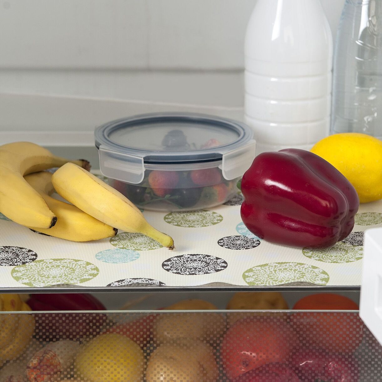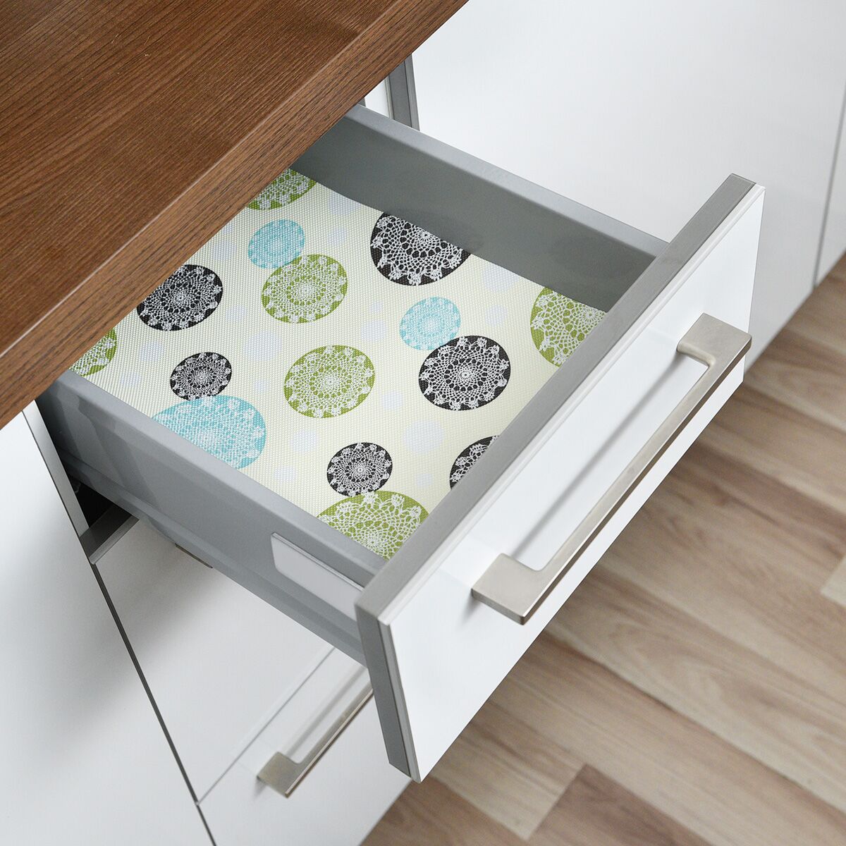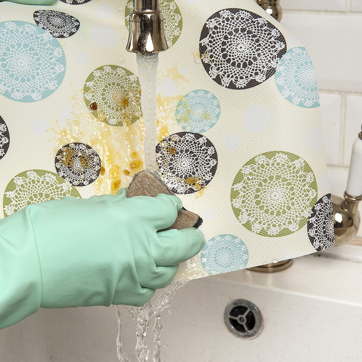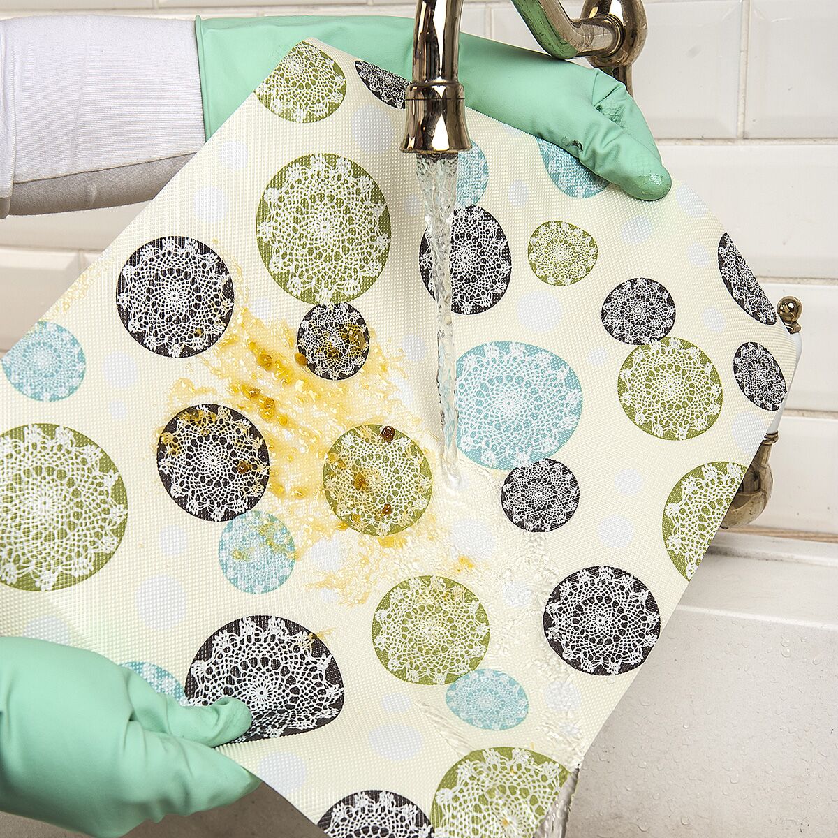 Вес без индивидуальной упаковки: 145+/-5г. Вес с упаковкой: 150+/-5г. Размер: 30*150см. Размер на полке: 30*4*4см. Состав: Этиленвинилацетат (ЭВА) 300г/м2. Цвет: молочно-белый с принтом из серых и зелено-голубых узоров.. Упаковка: цветная бумажная обечайка.